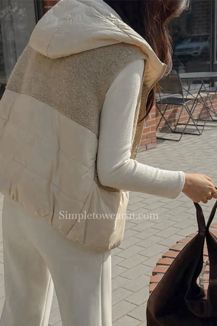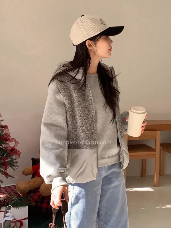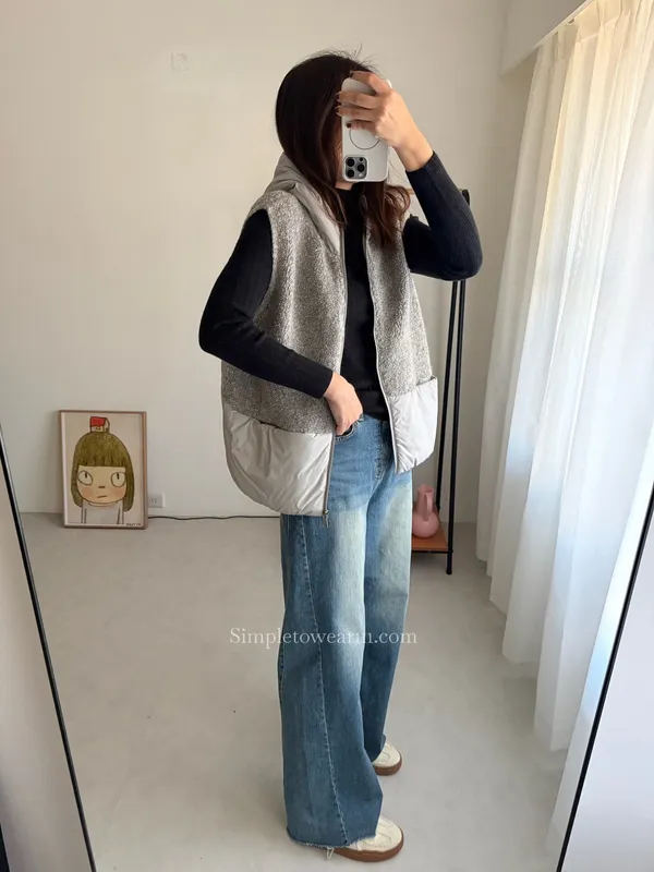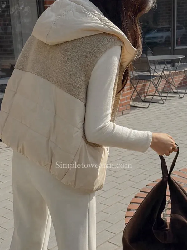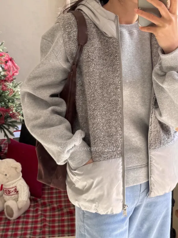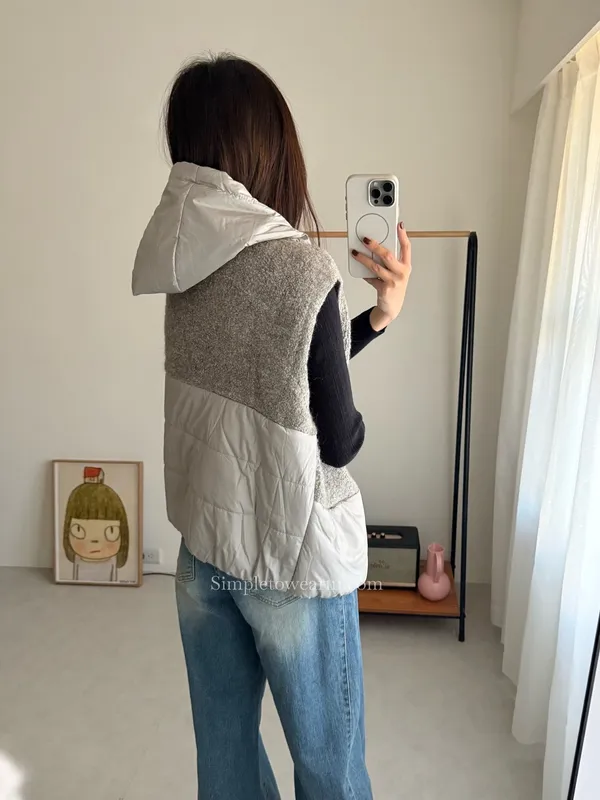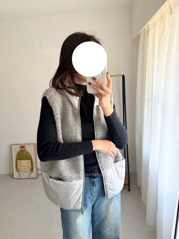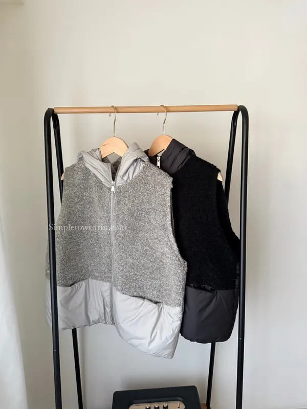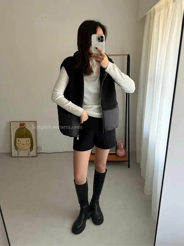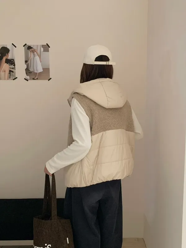 韓版鴨絨拼接針織背心外套 (卡其/黑/灰)