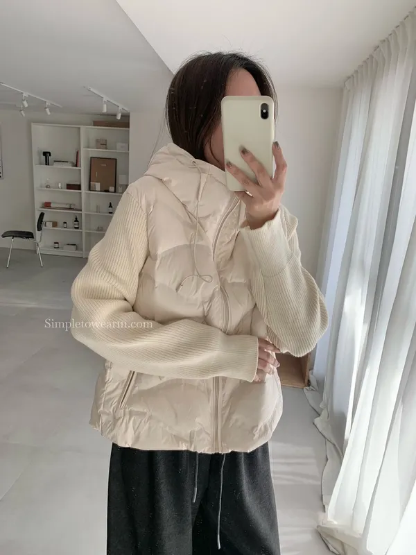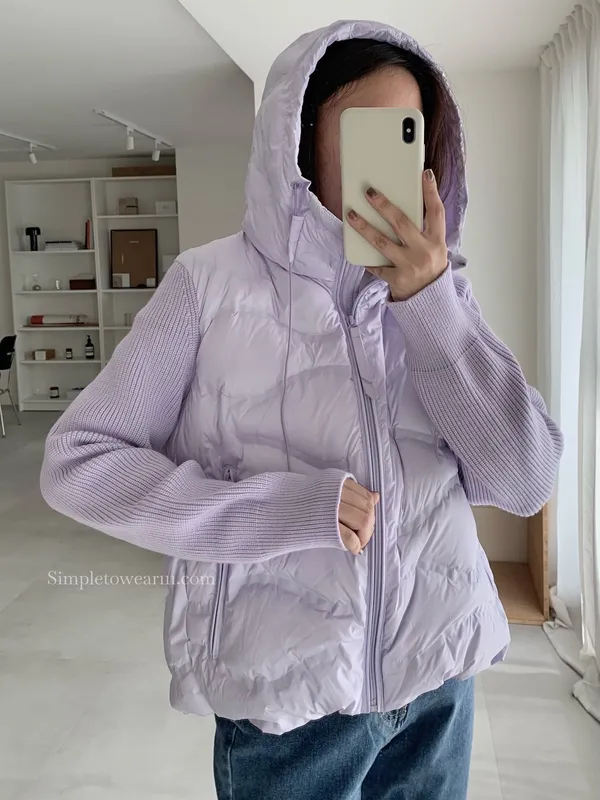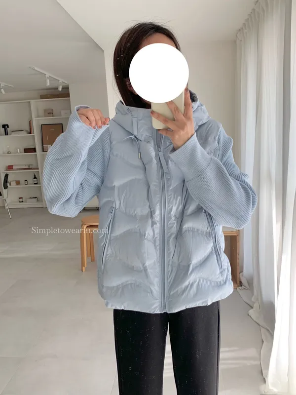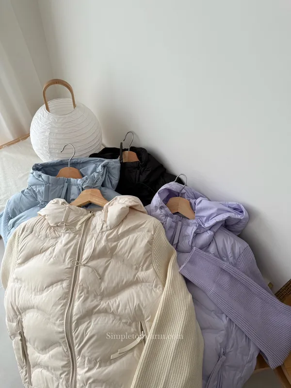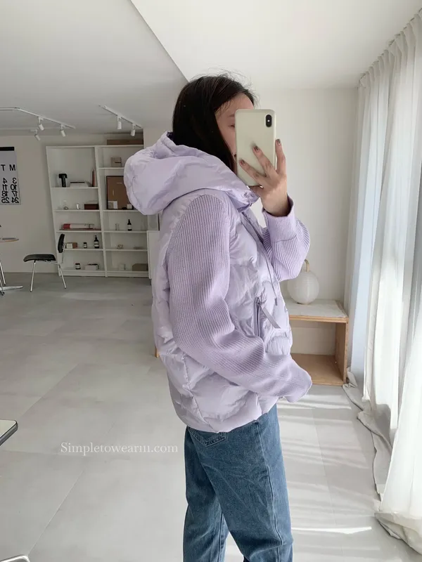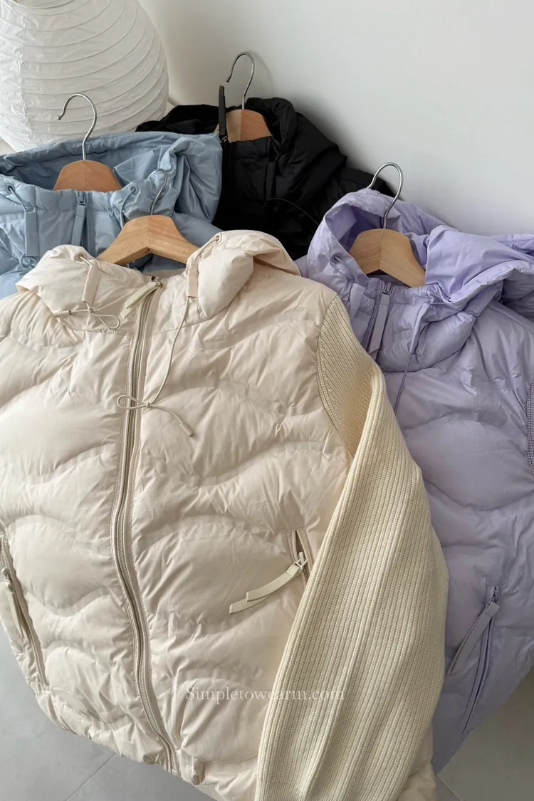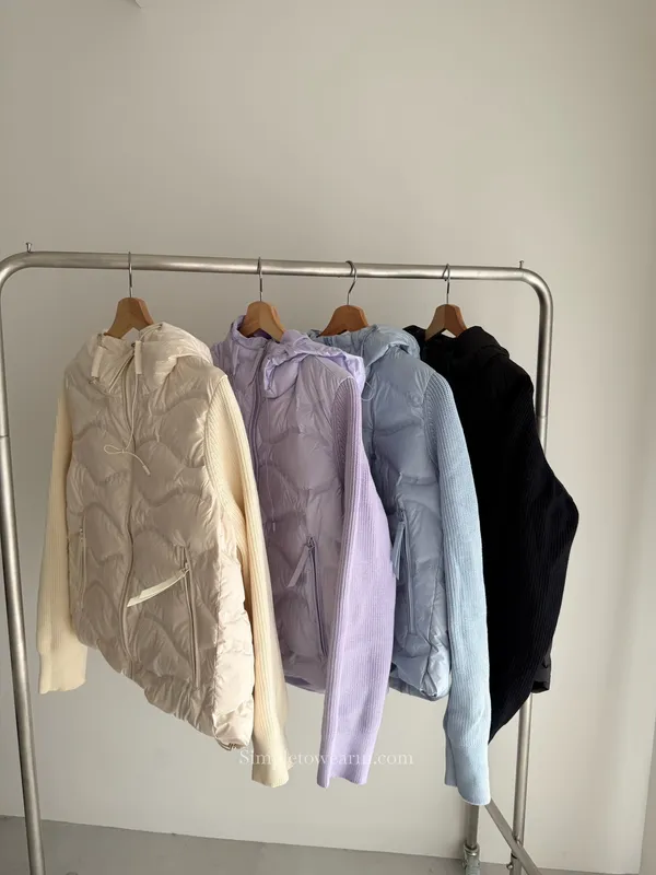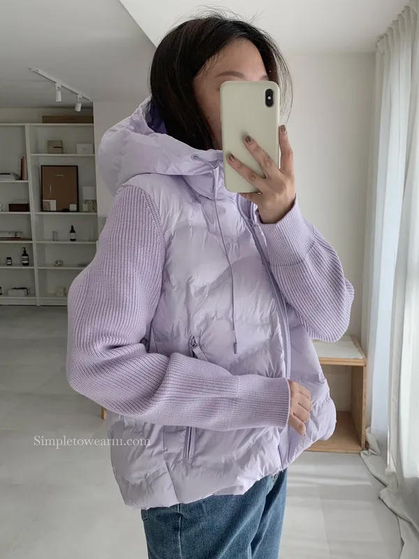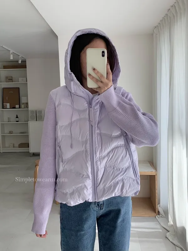 韓版鴨絨80% 針織袖羽絨外套 (米白/粉紫/粉藍/黑)