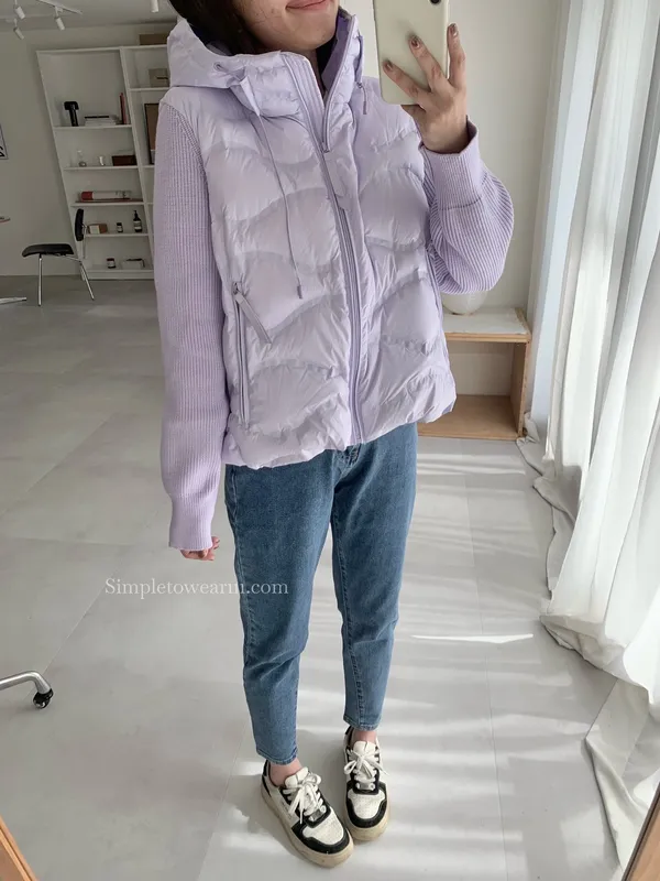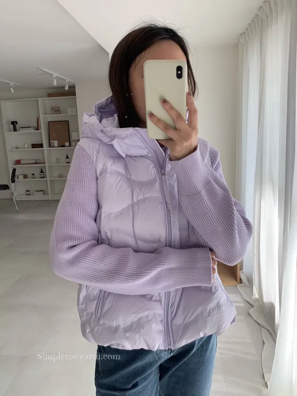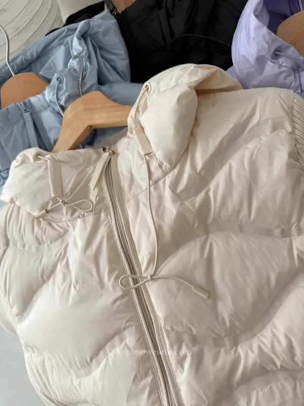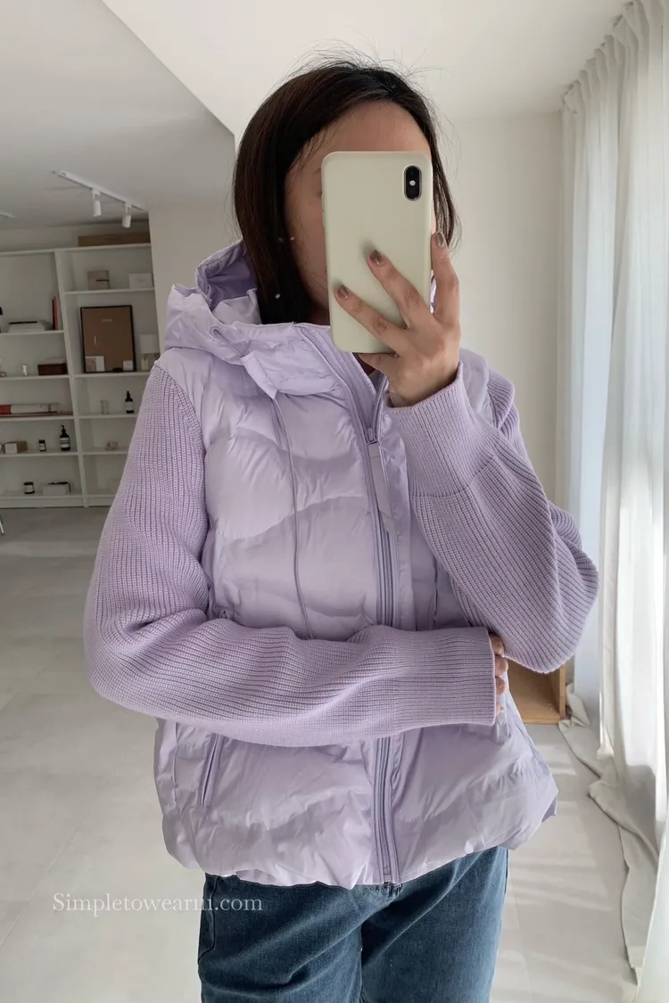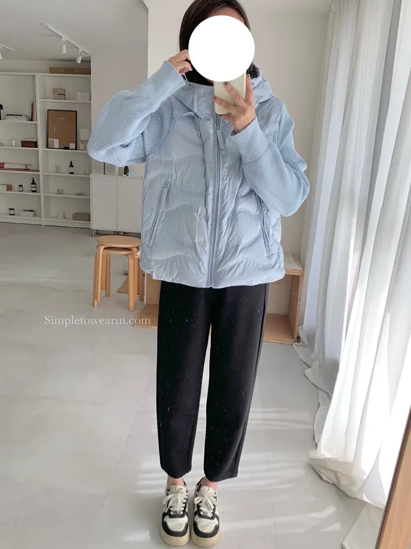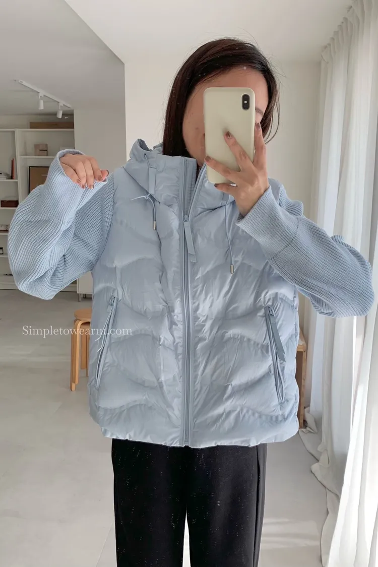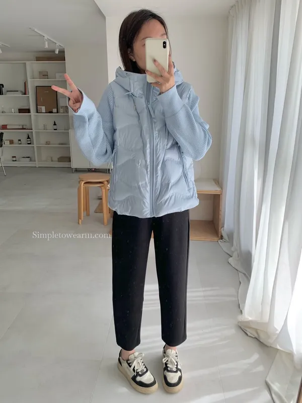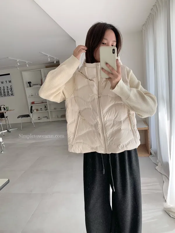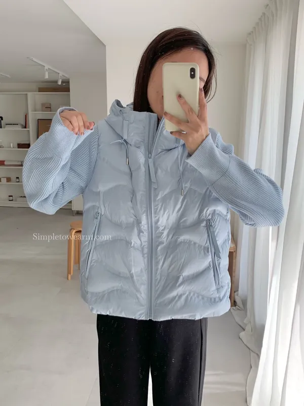 韓版鴨絨80% 針織袖羽絨外套 (米白/粉紫/粉藍/黑)
