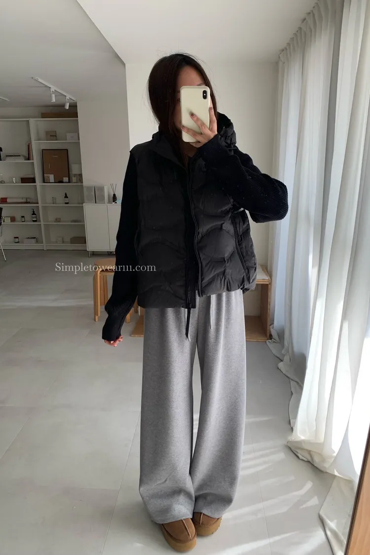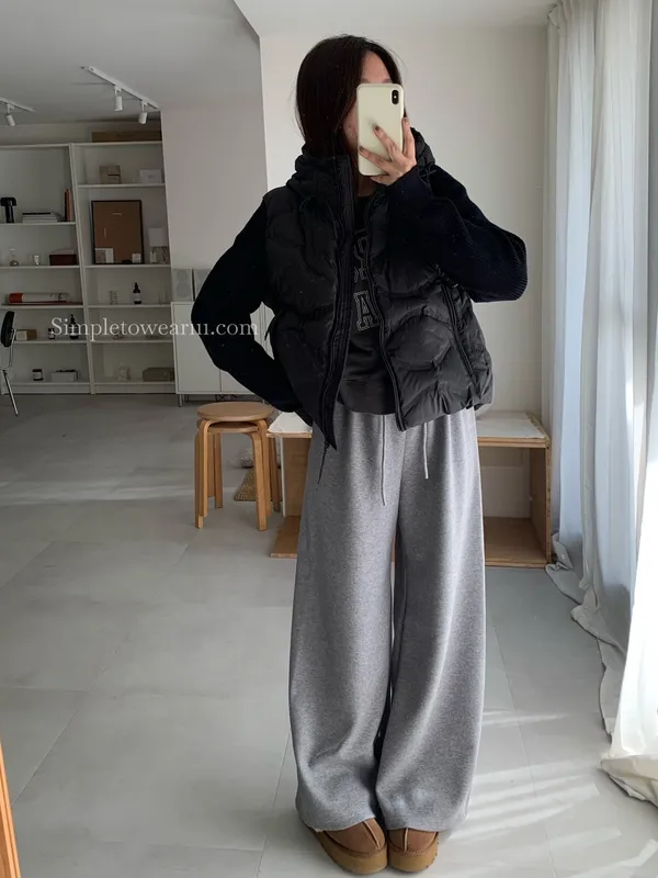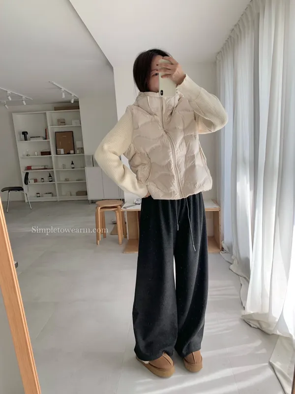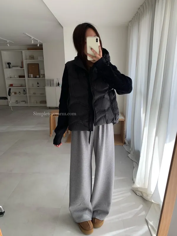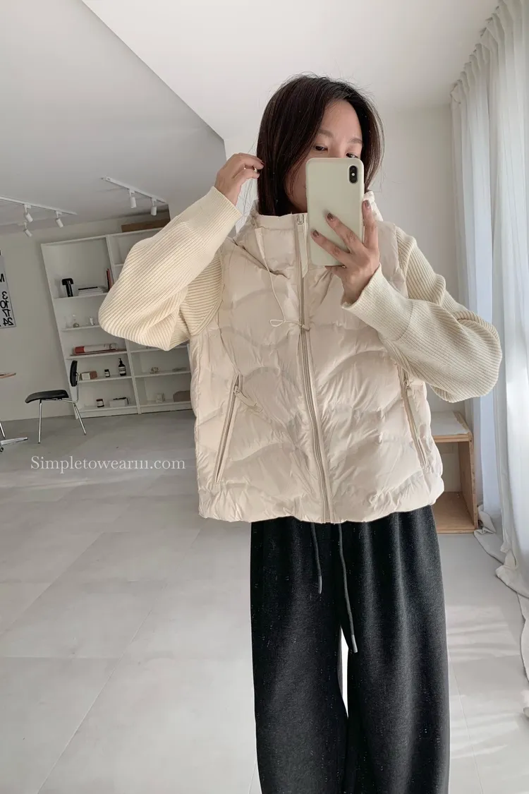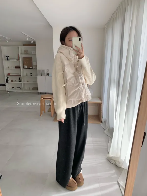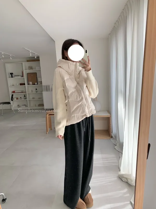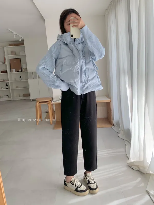 韓版鴨絨80% 針織袖羽絨外套 (米白/粉紫/粉藍/黑)