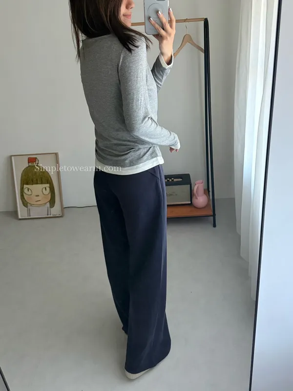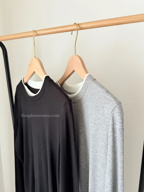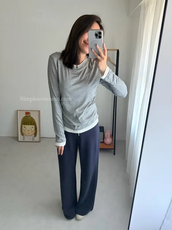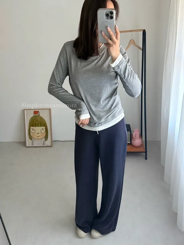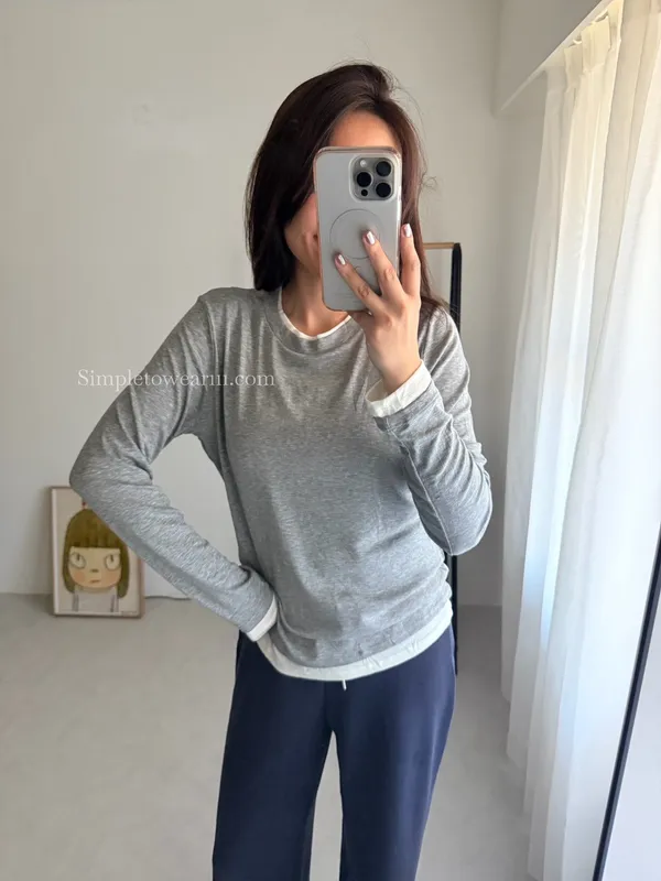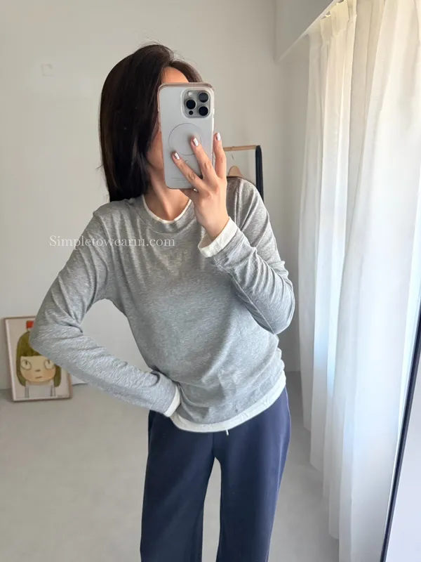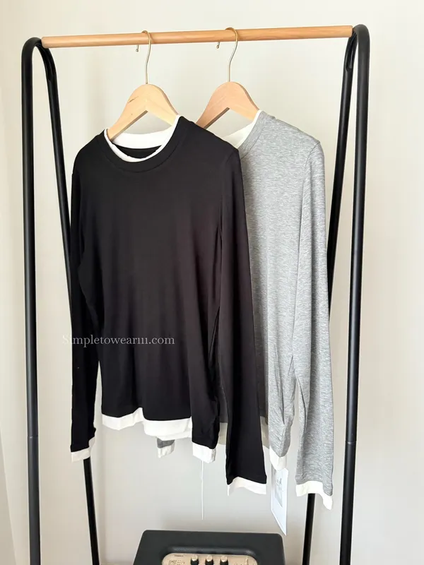 TH家 薄料撞色長袖素TEE (灰/黑)