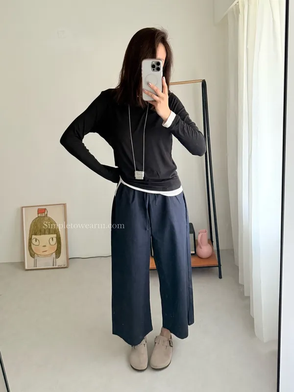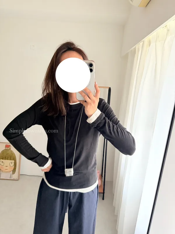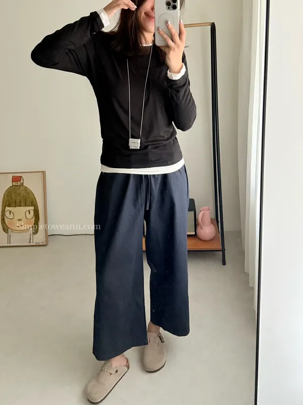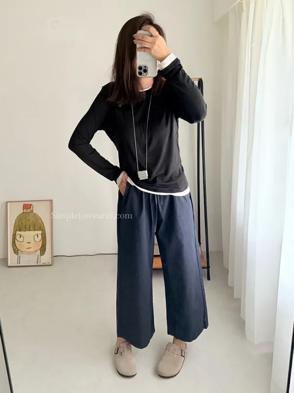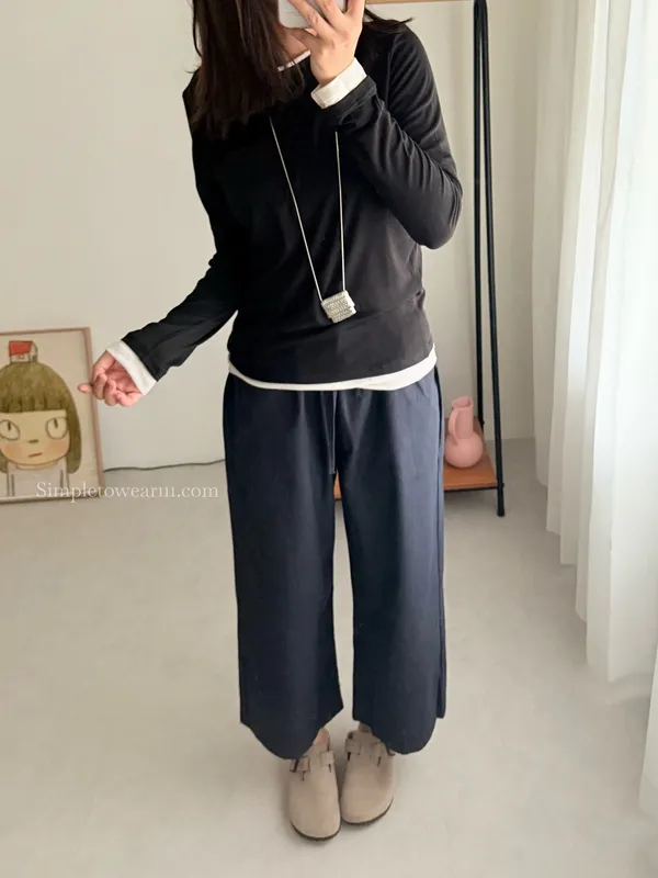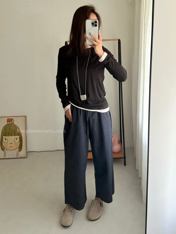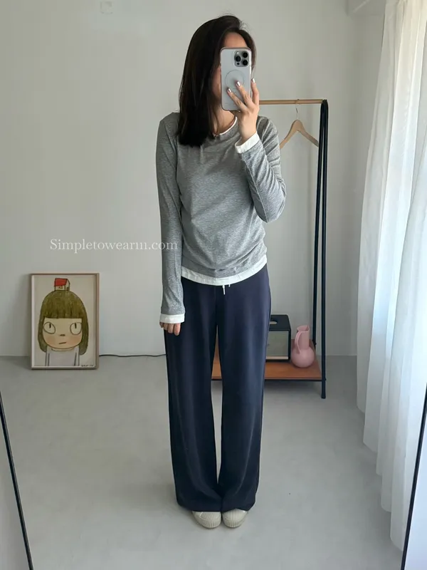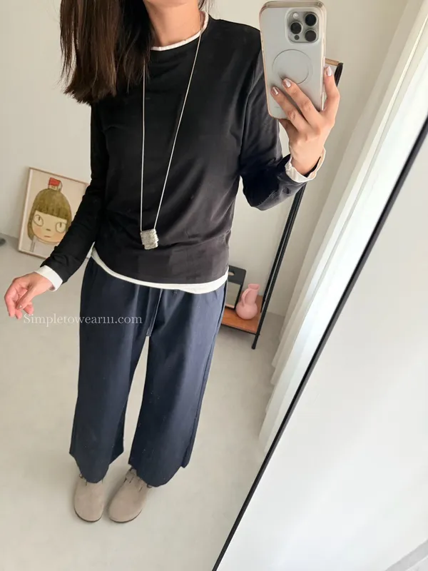 TH家 薄料撞色長袖素TEE (灰/黑)