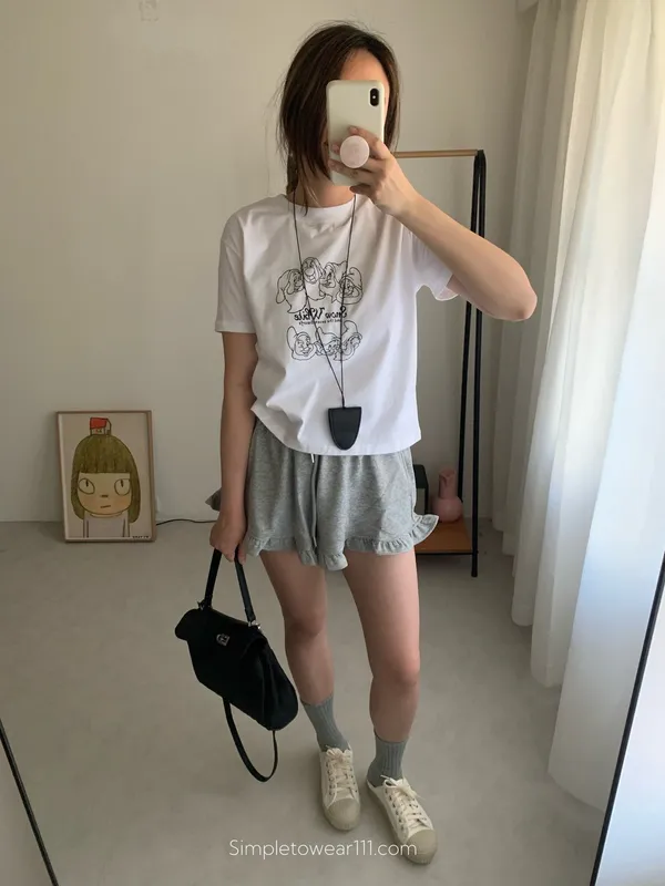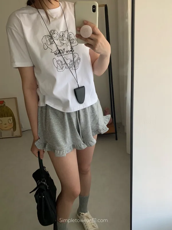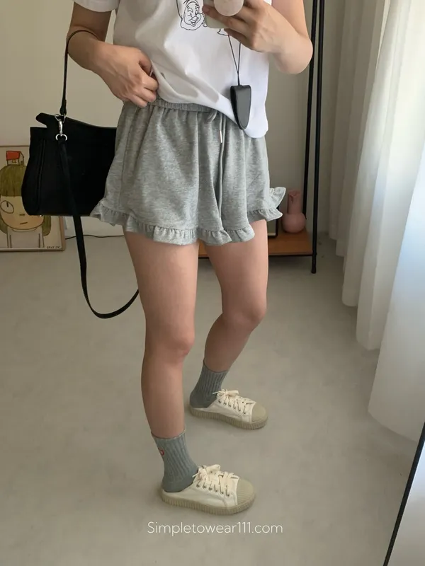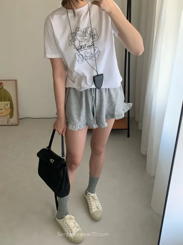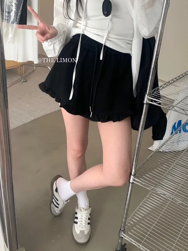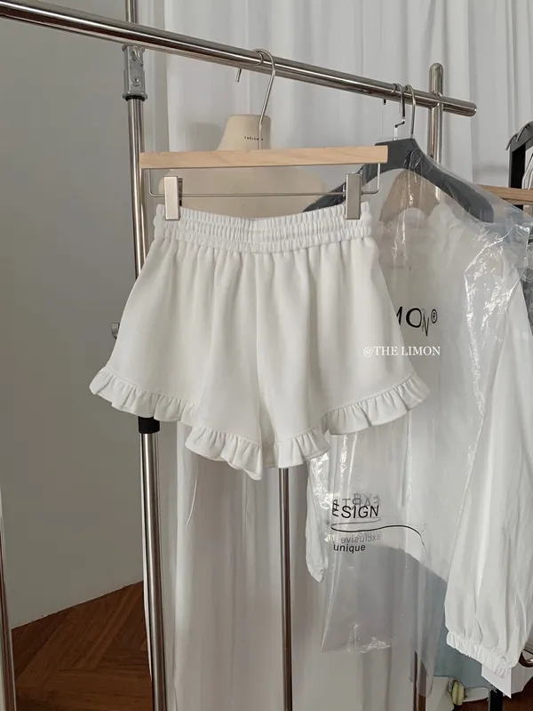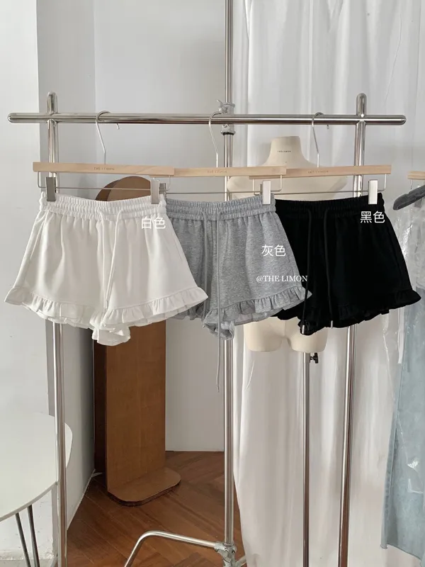 檸檬家 木耳邊休閒短褲 M/L (白/灰/黑)
