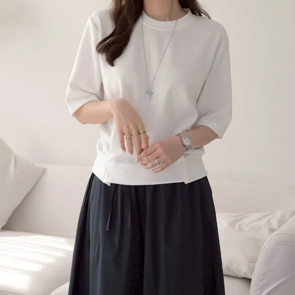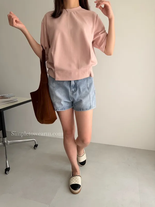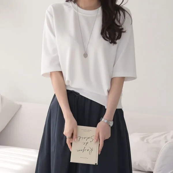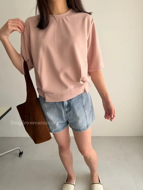 韓 經典五分袖棉短TEE (白/綠/粉/黑)