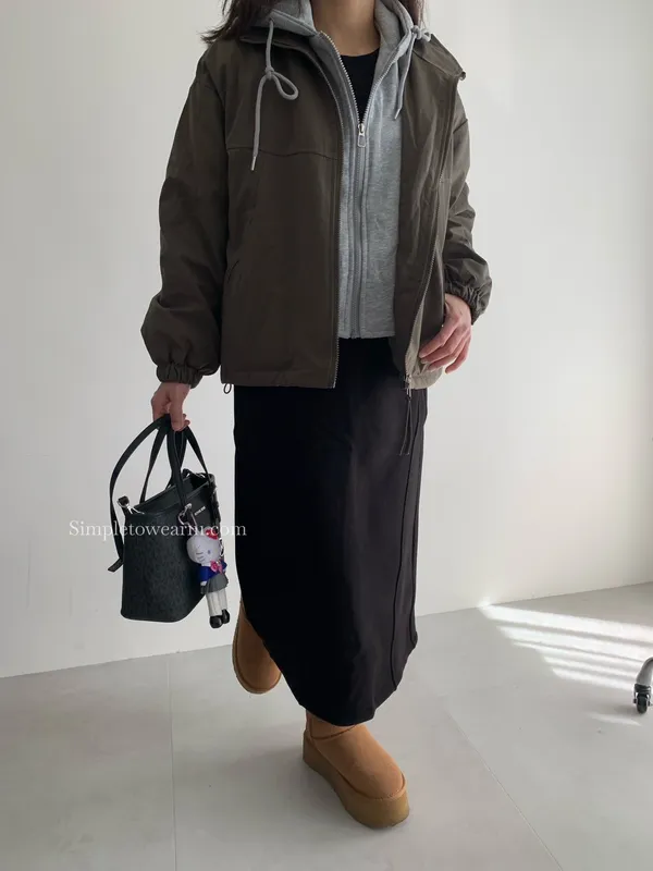 超百搭 暖暖假兩件軍裝厚外套 (軍綠/黑)