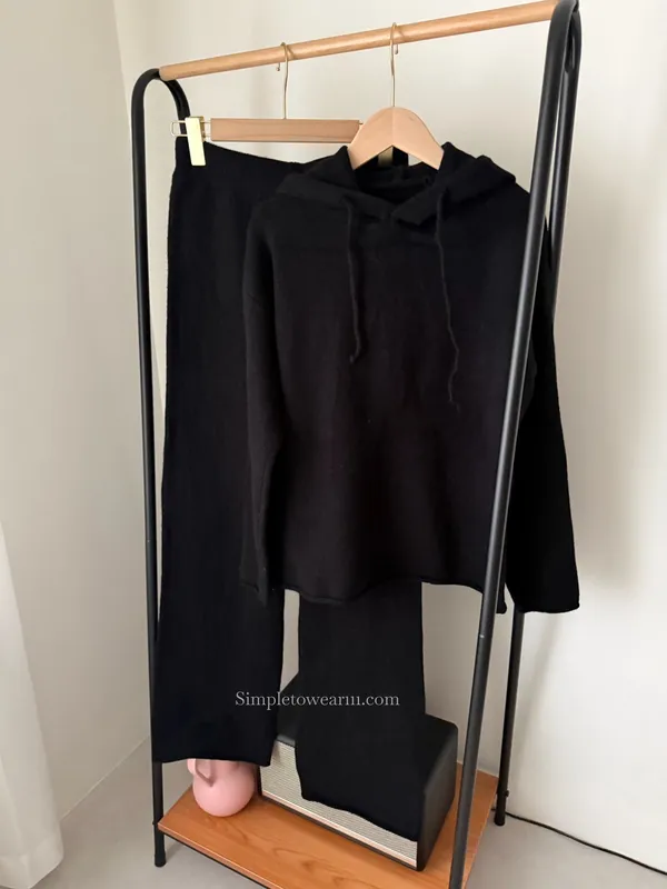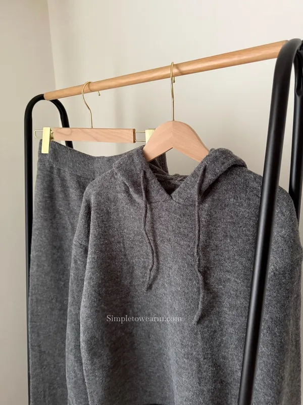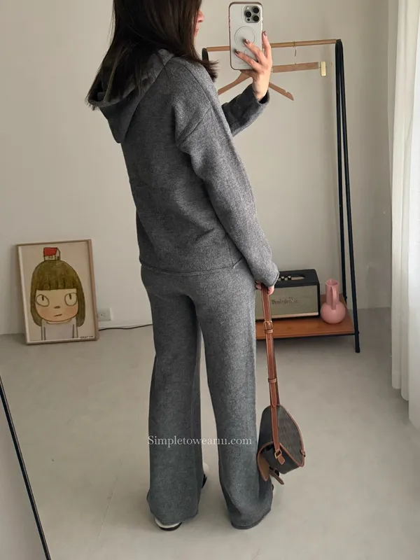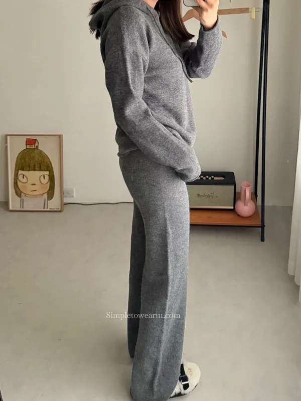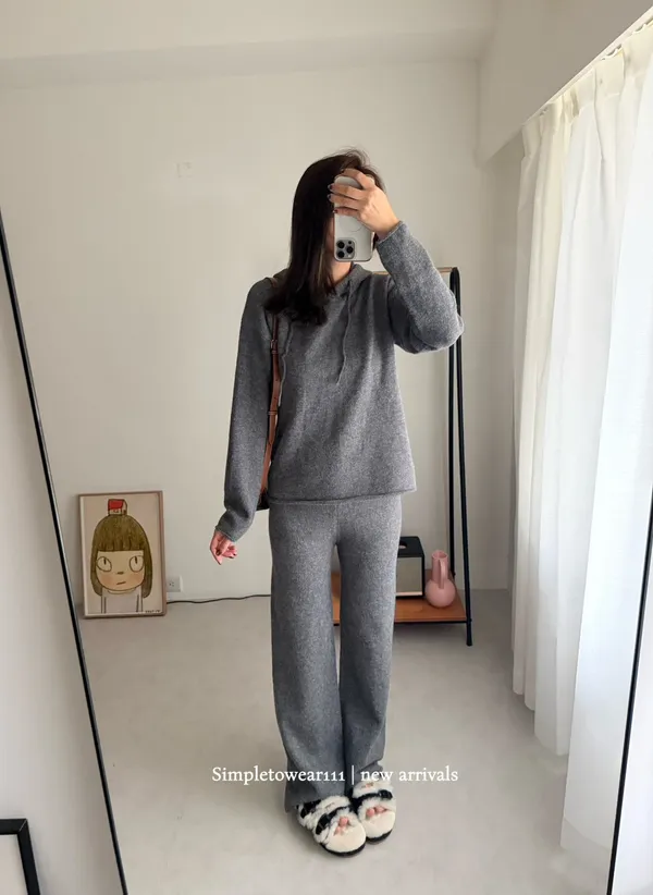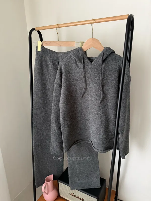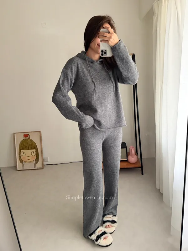 懶人必備~ 針織連帽套裝 (深灰/黑)