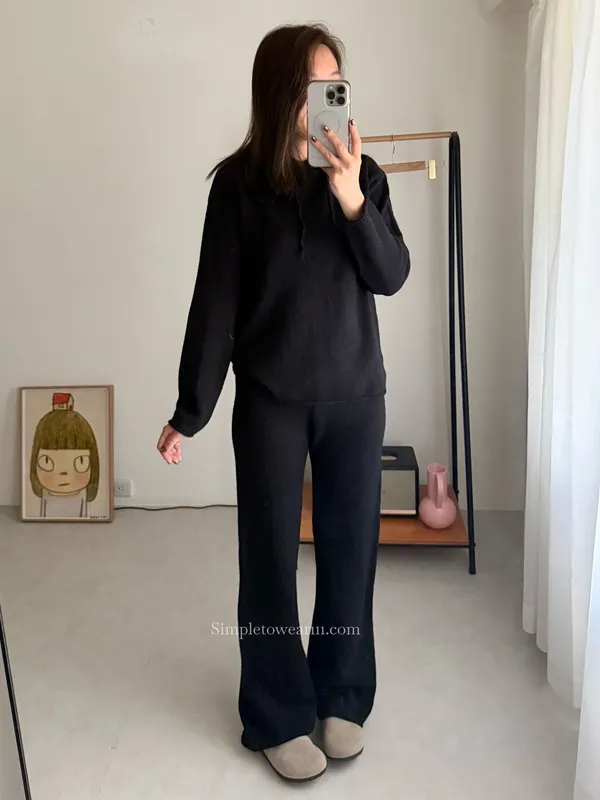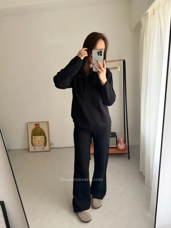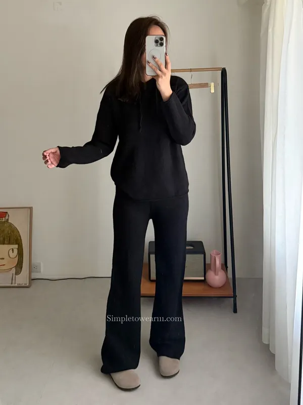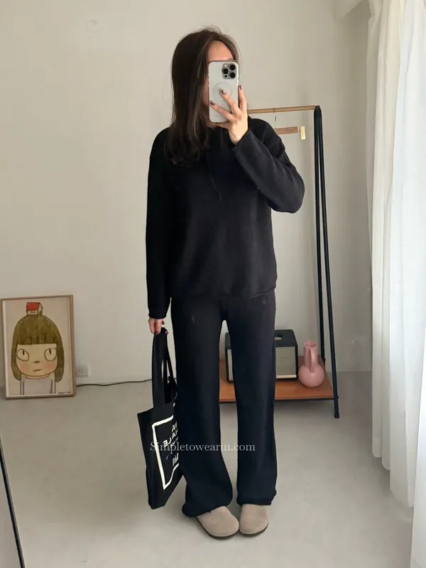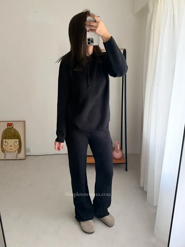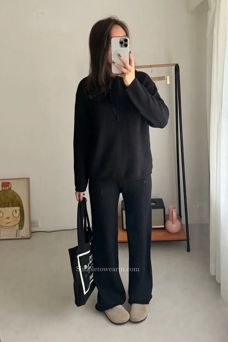 懶人必備~ 針織連帽套裝 (深灰/黑)