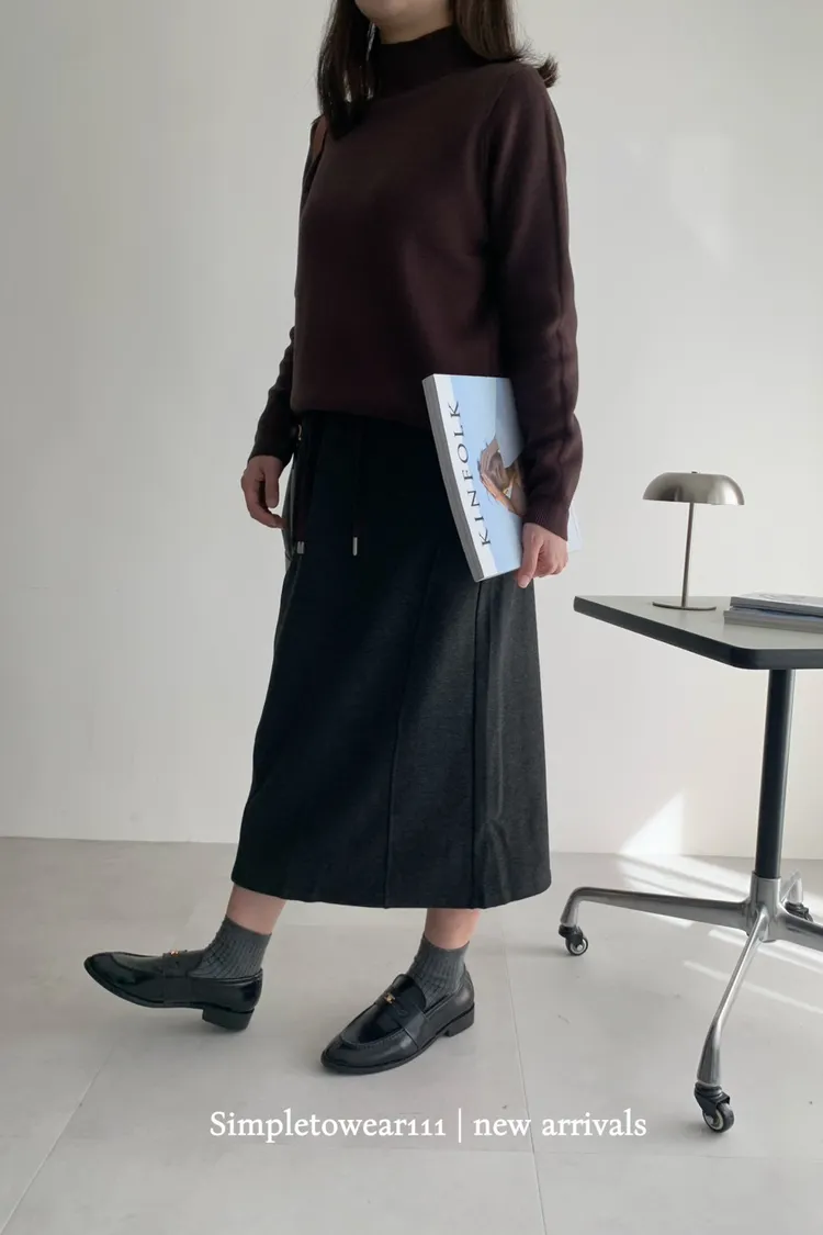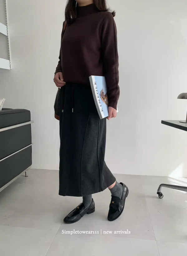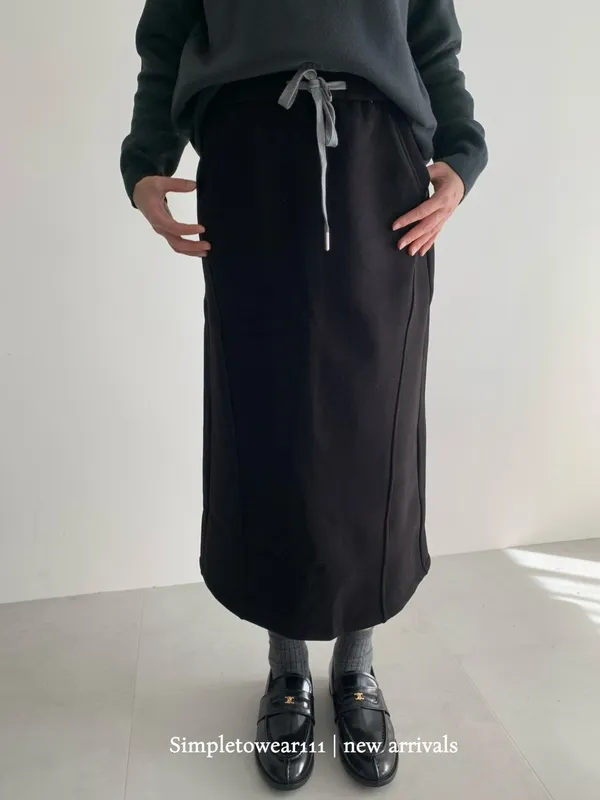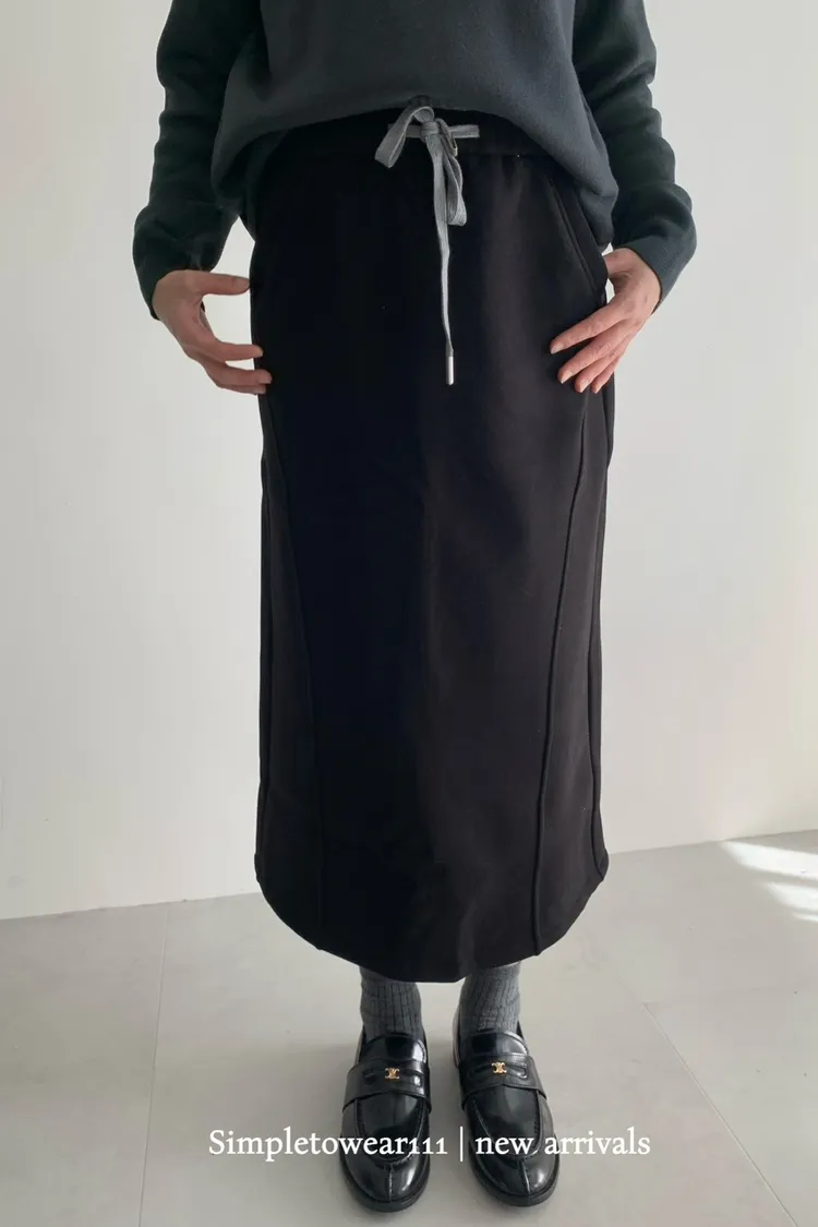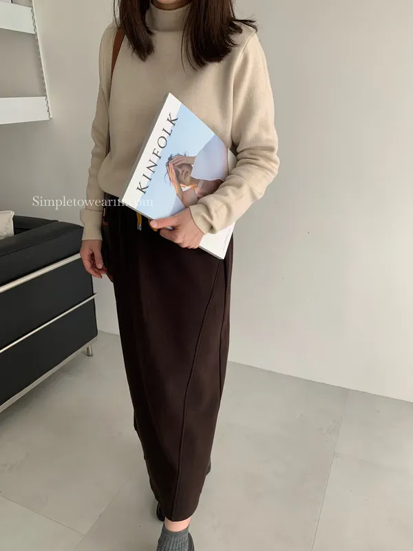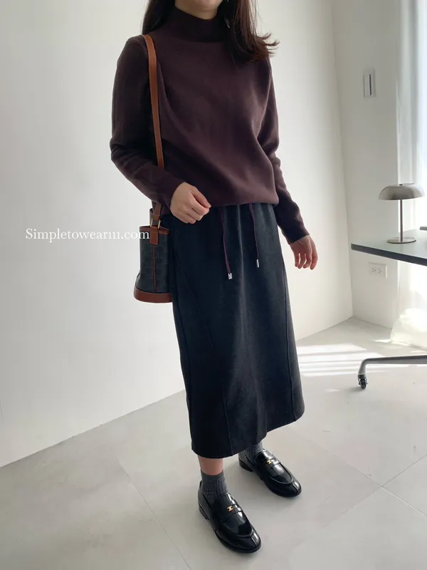 秋冬必備 羊絨刷毛撞色長裙 M~XL (黑/深灰/咖)