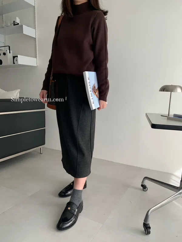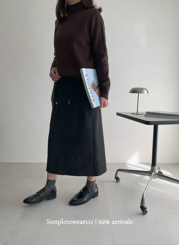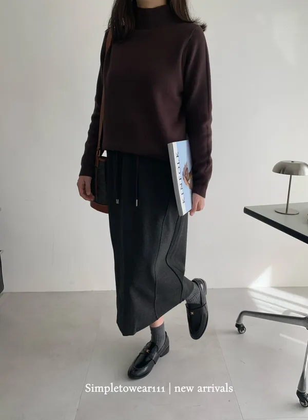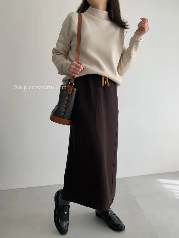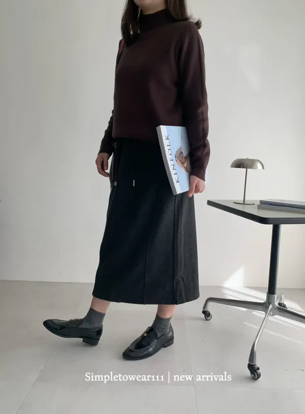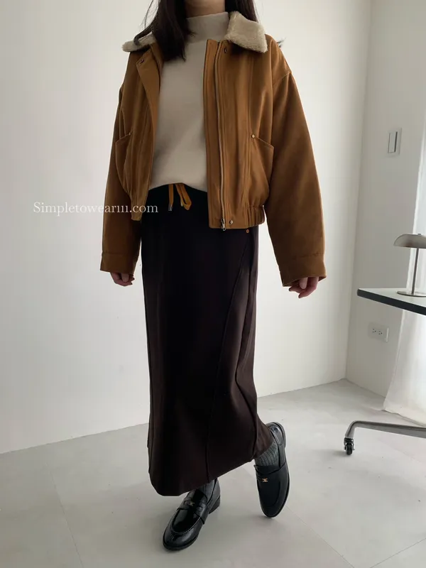 秋冬必備 羊絨刷毛撞色長裙 M~XL (黑/深灰/咖)