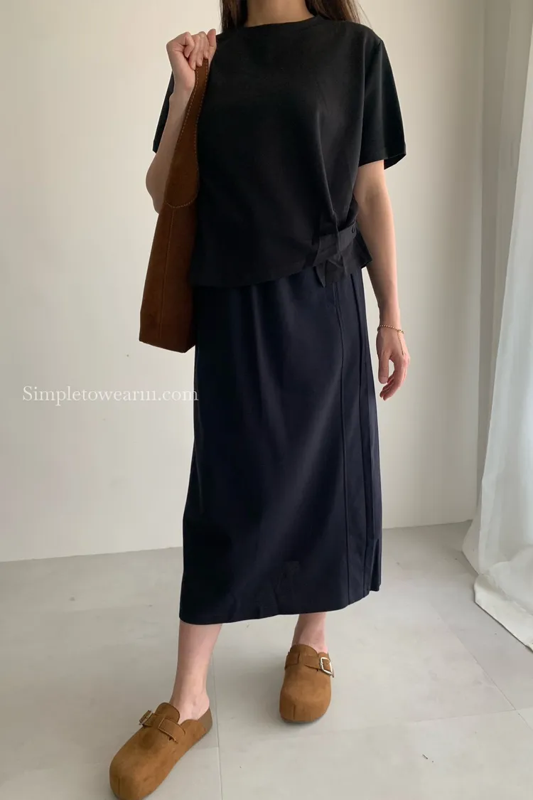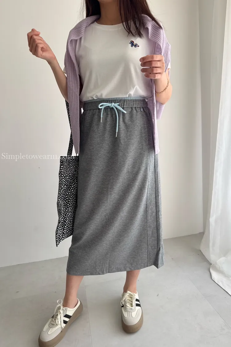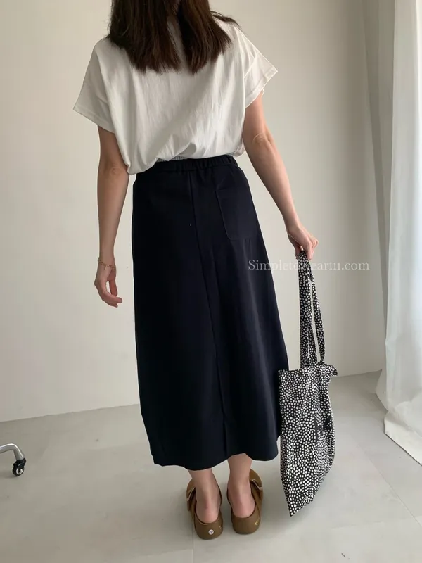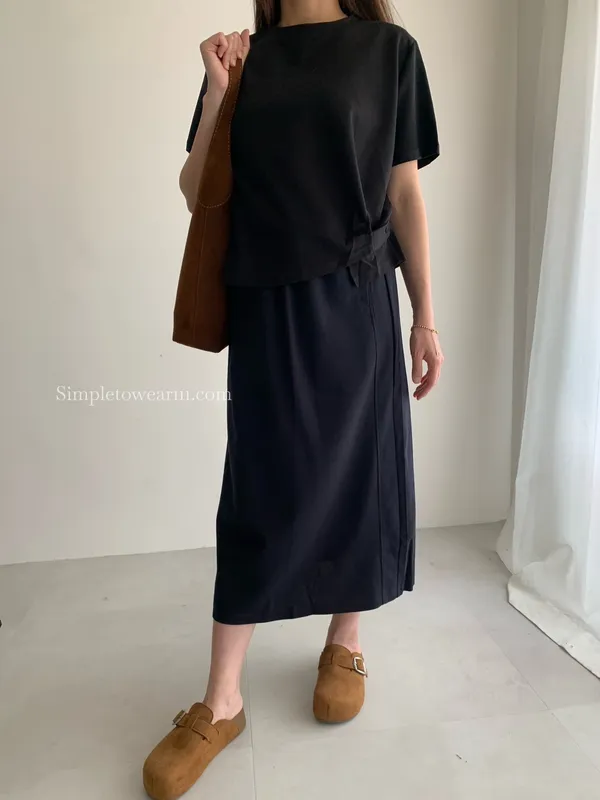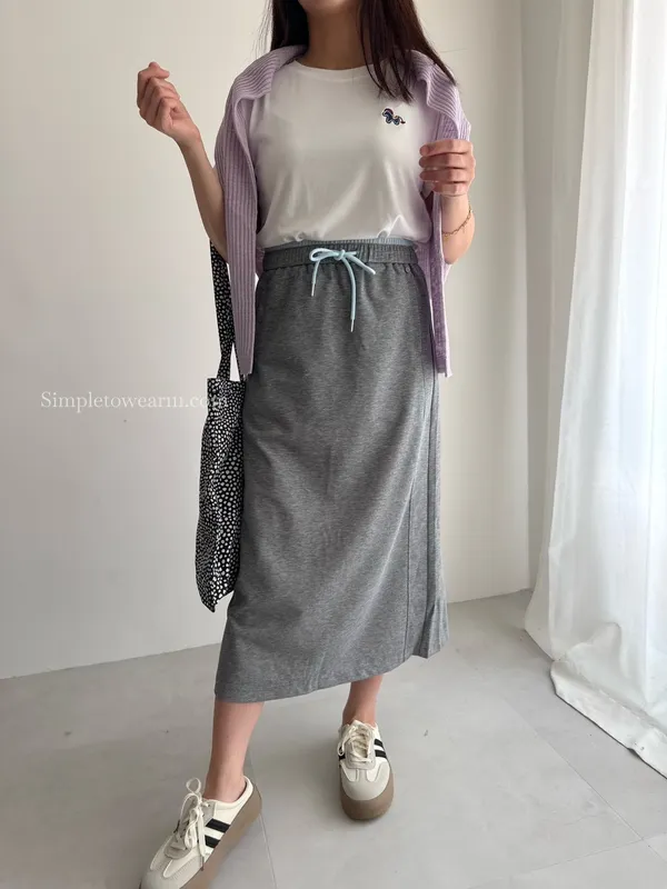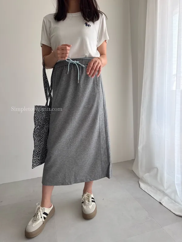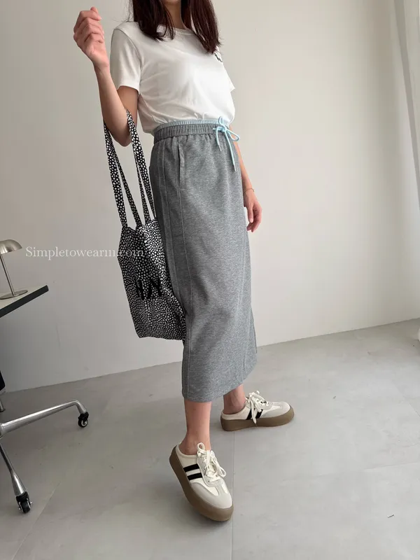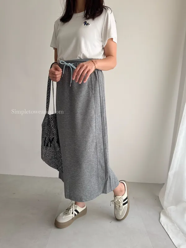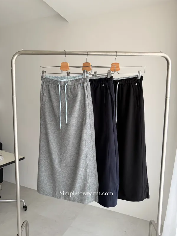 百搭撞色腰圍涼感長裙 (淺灰/深藍/黑) M~XL