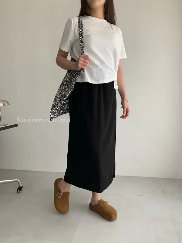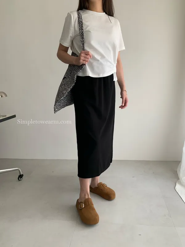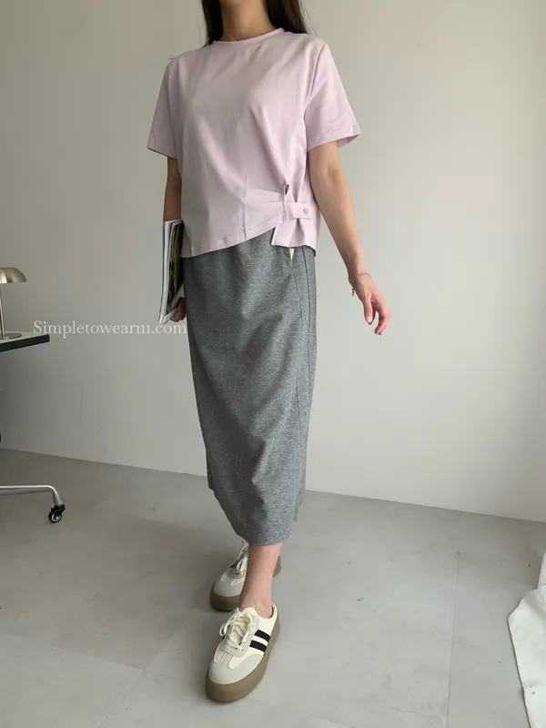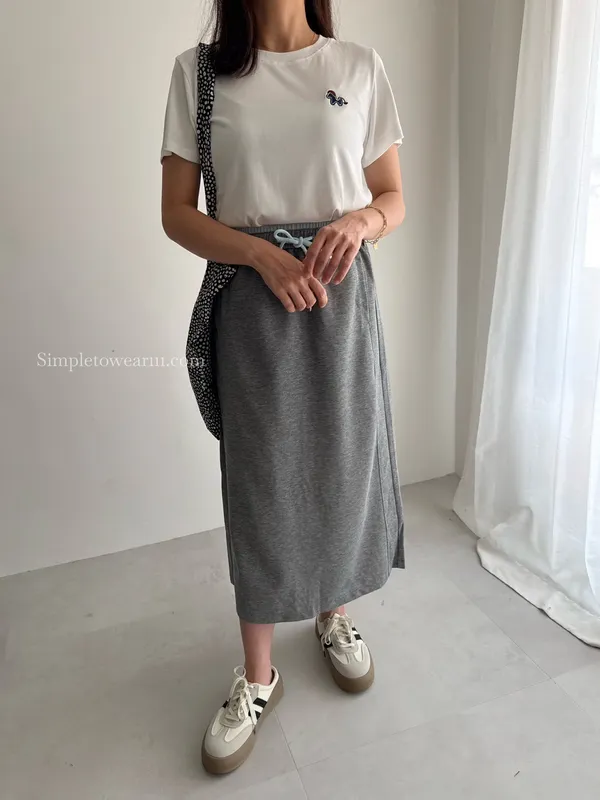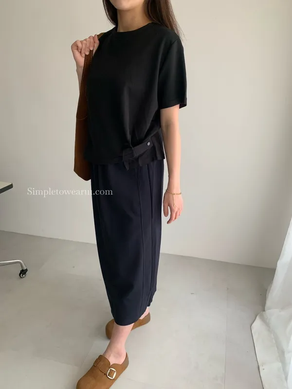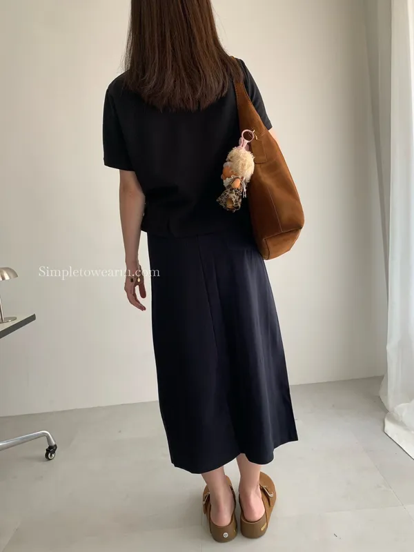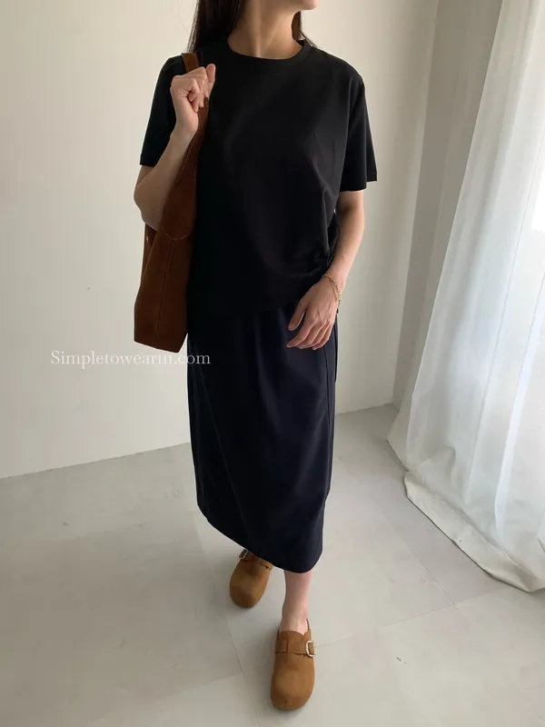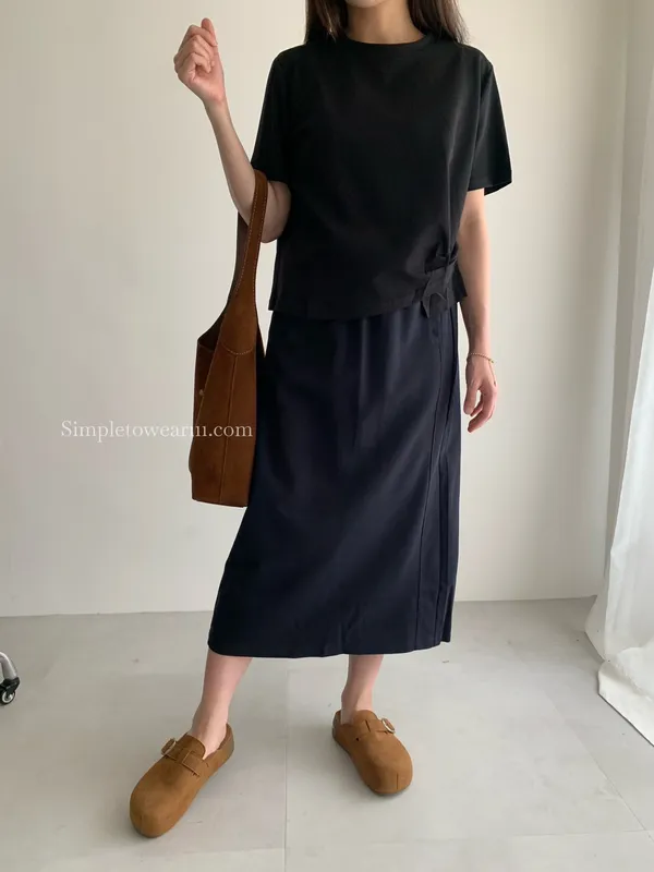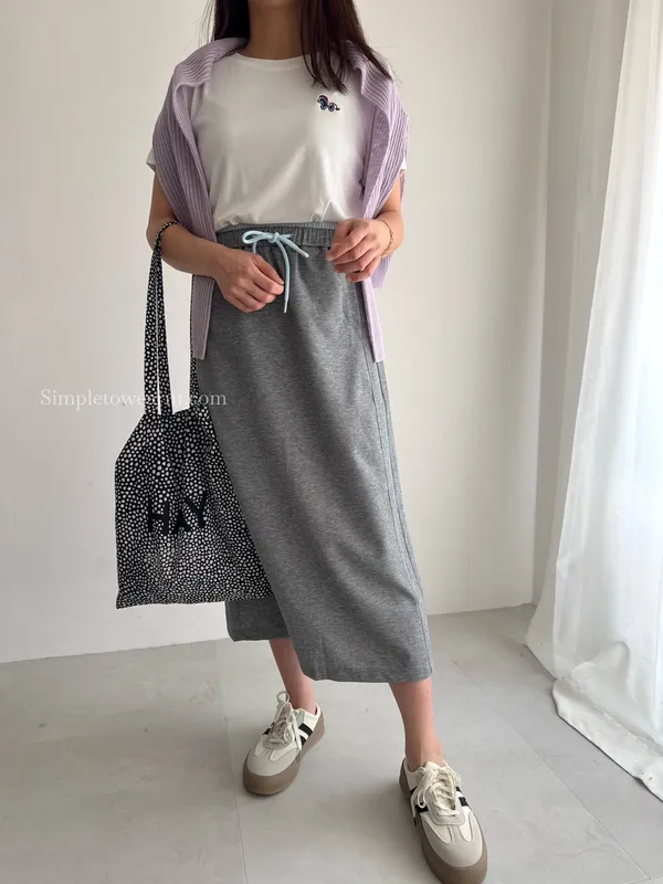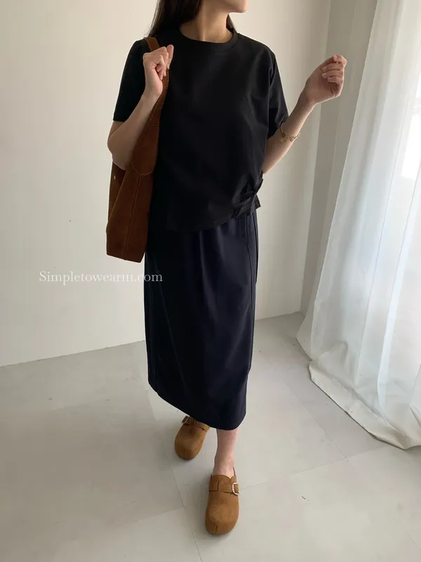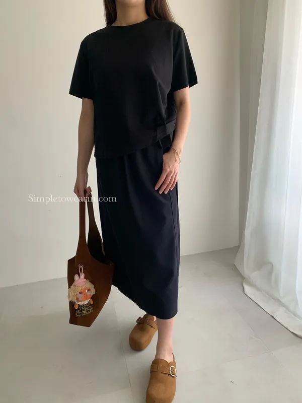 百搭撞色腰圍涼感長裙 (淺灰/深藍/黑) M~XL