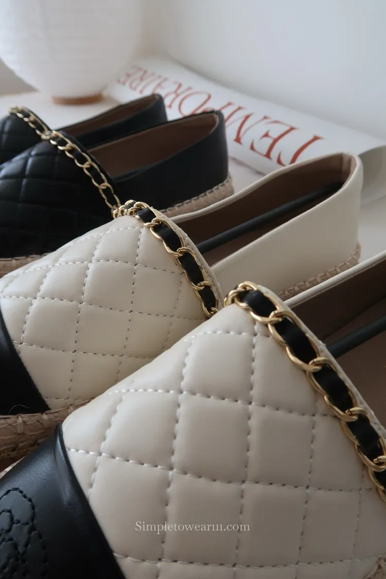 金鍊菱格編織懶人包鞋 黑/米白 35~40