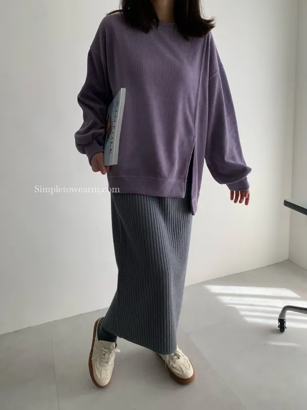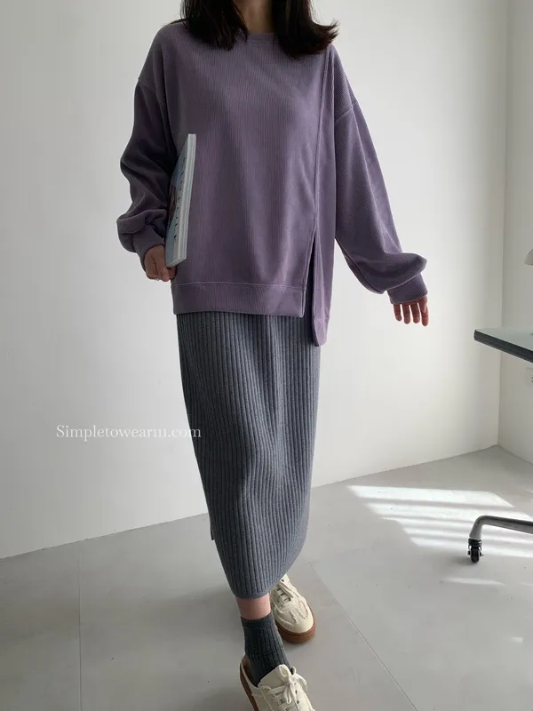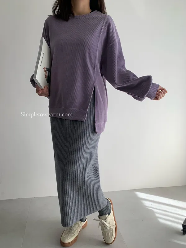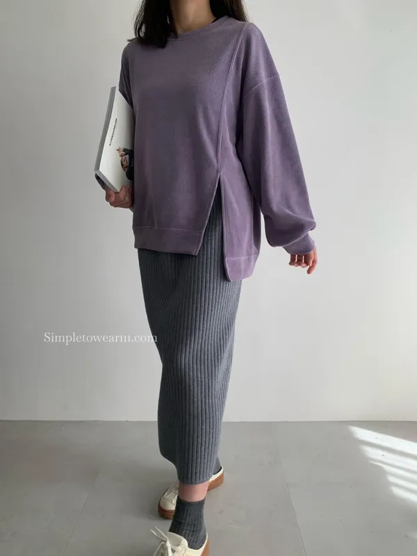 韓 長版燈芯絨上衣 (紫/卡)