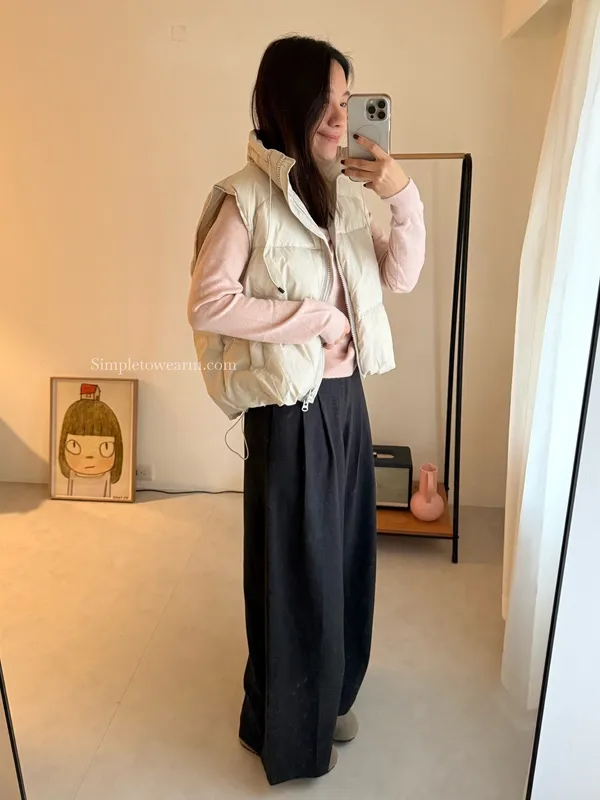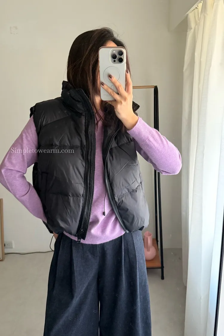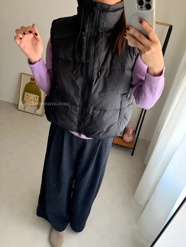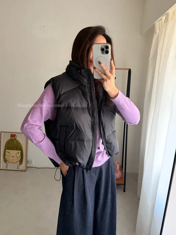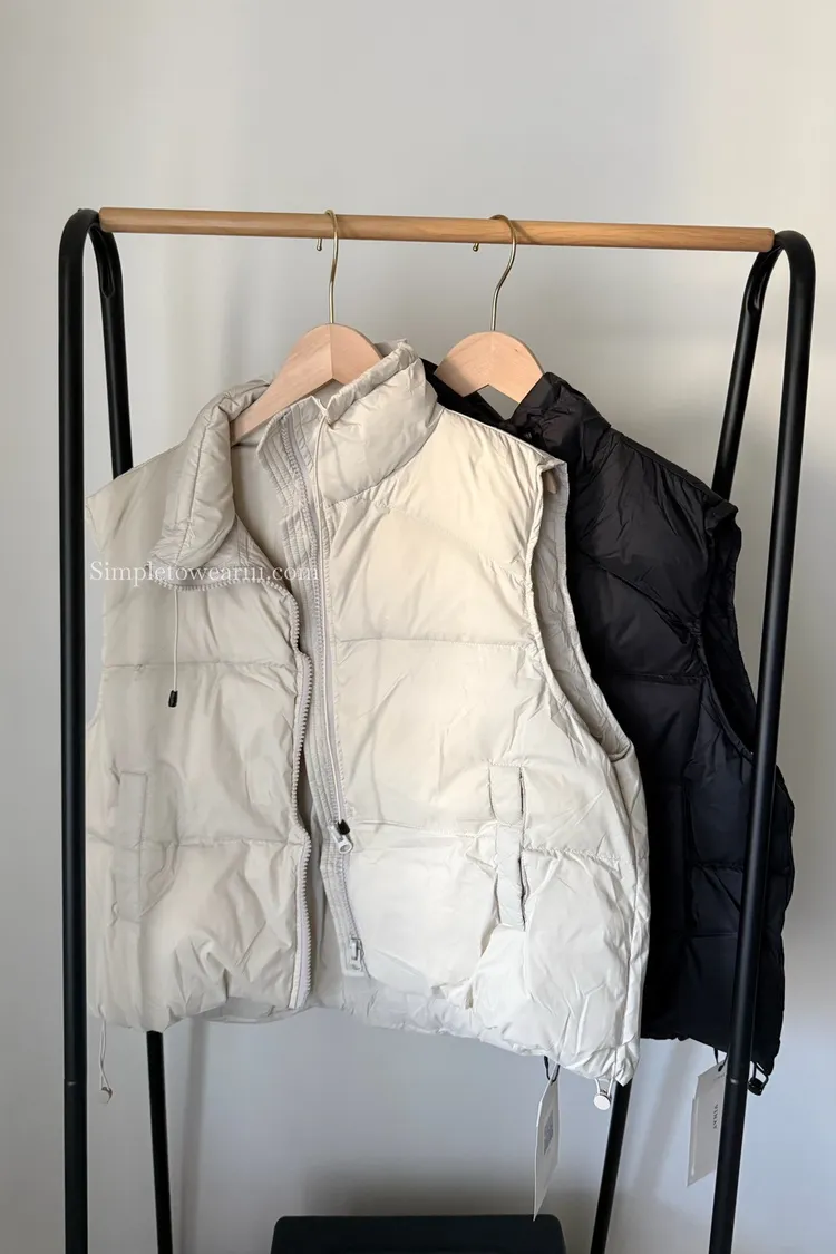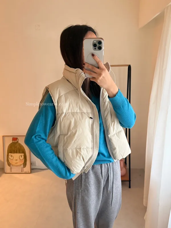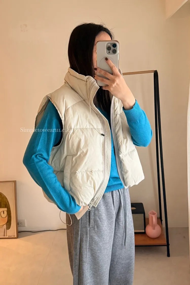 超級暖 50%鴨絨短版羽絨背心外套 (杏 /黑)