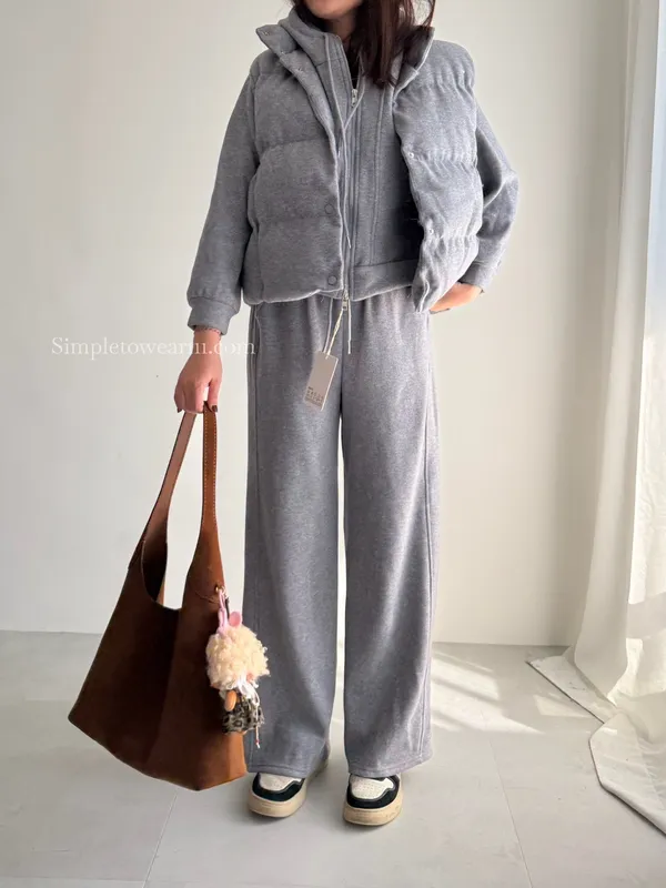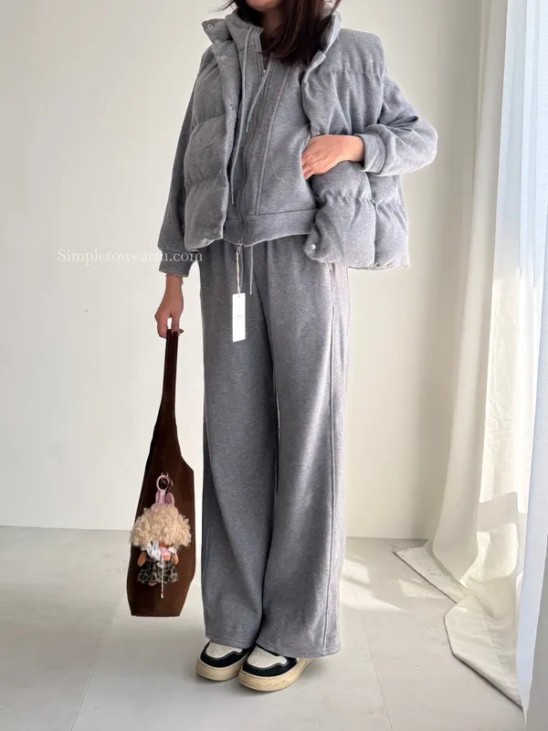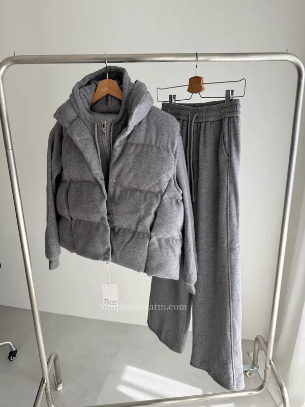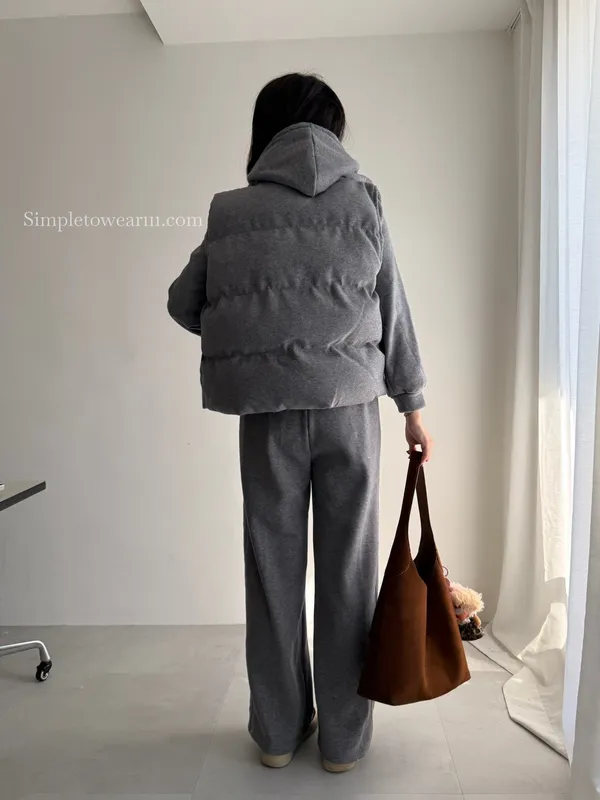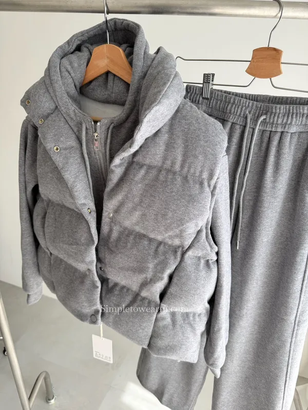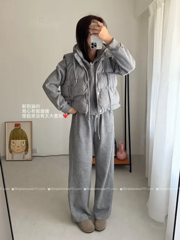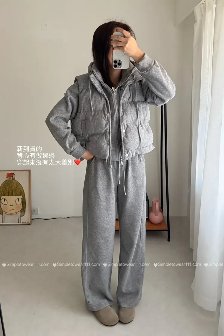 必敗款 三件套連帽外套背心套裝 (灰/燕麥)