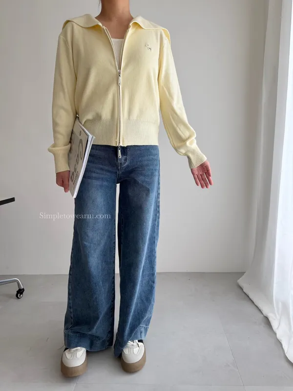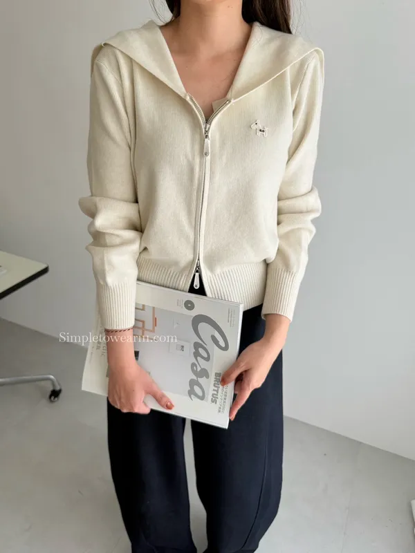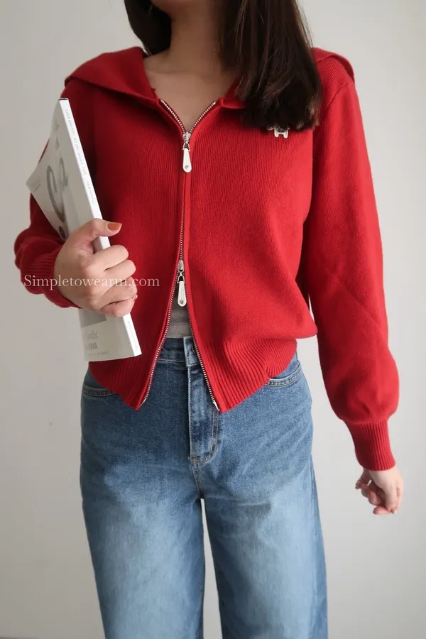 超美~ 海軍領針織外套 (米杏/奶黃/淺藍/燕麥/紅色/灰色)