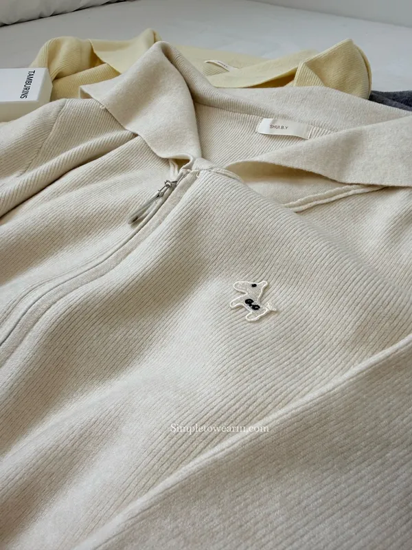 仔細看他的拉鍊和胸口小狗刺繡
