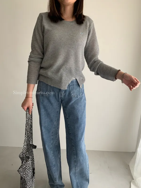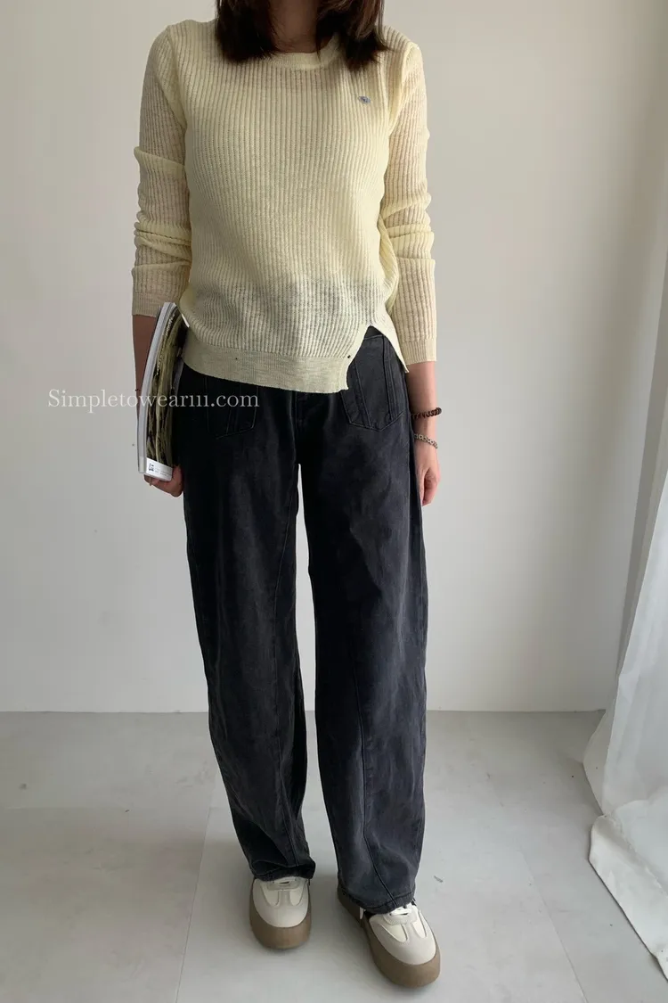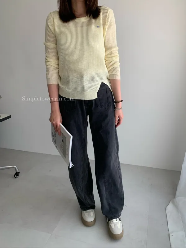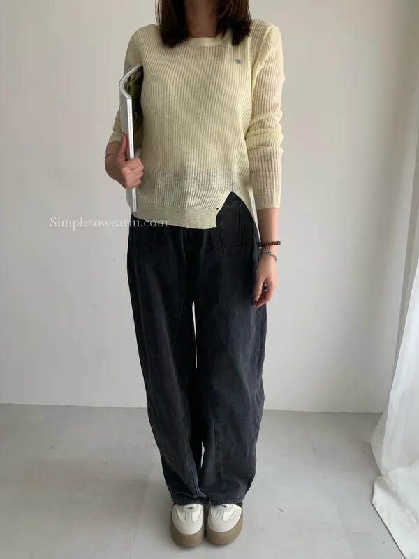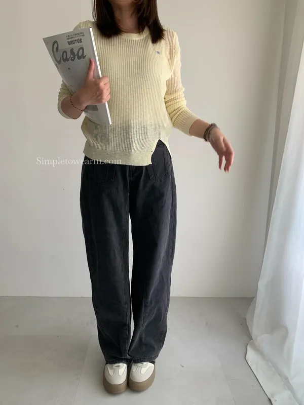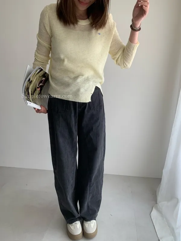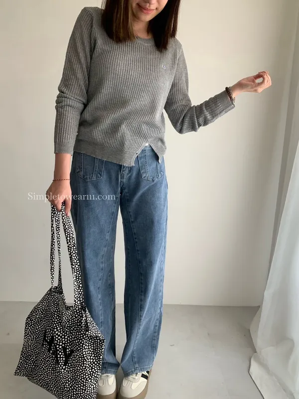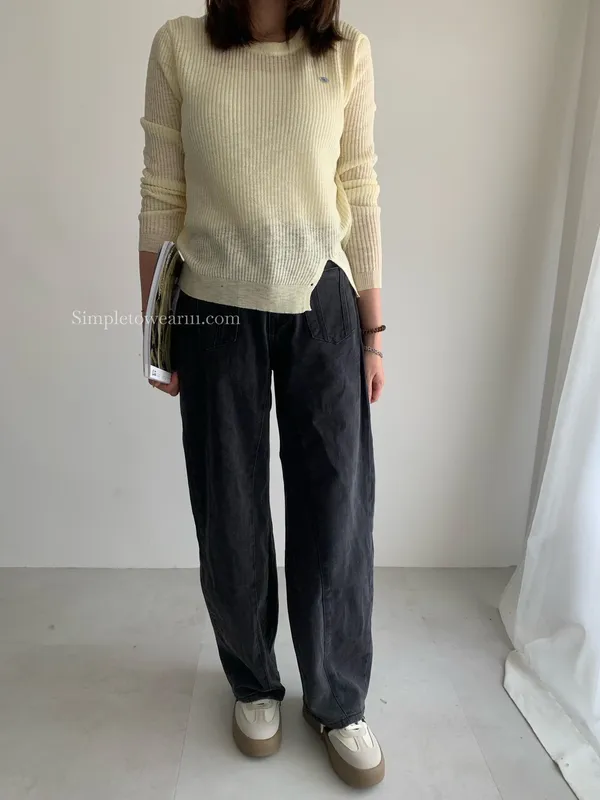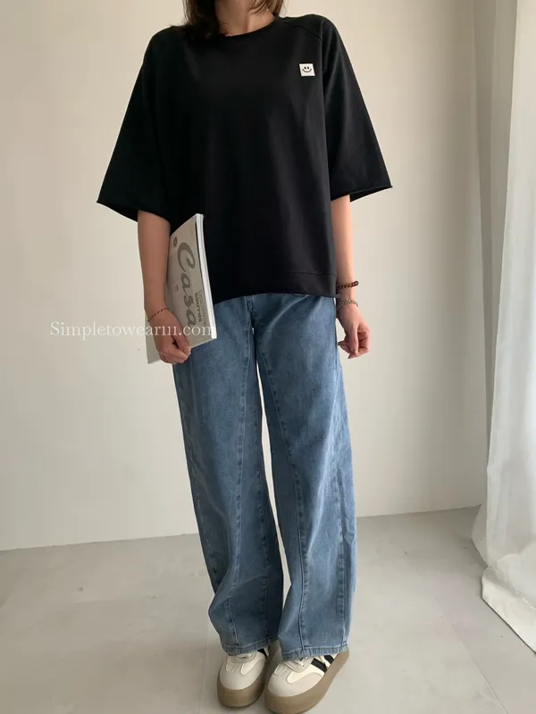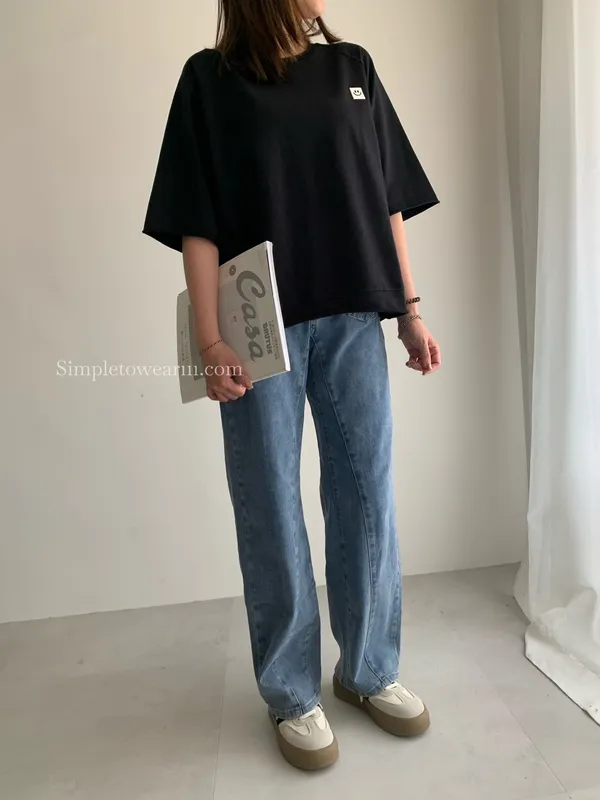 韓 口袋造型直筒寬褲 藍/黑 S~XL