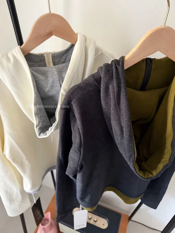 微刷絨超暖連帽休閒上衣 (杏/深灰)