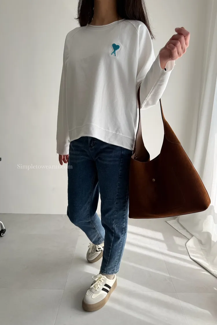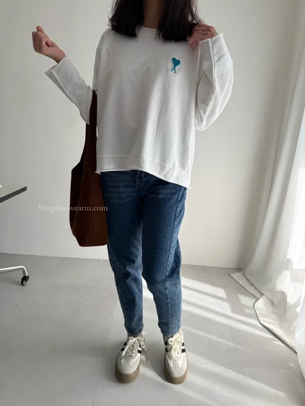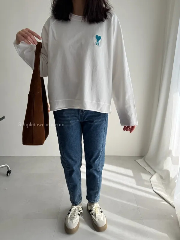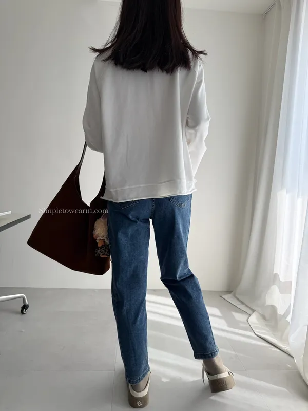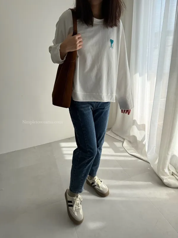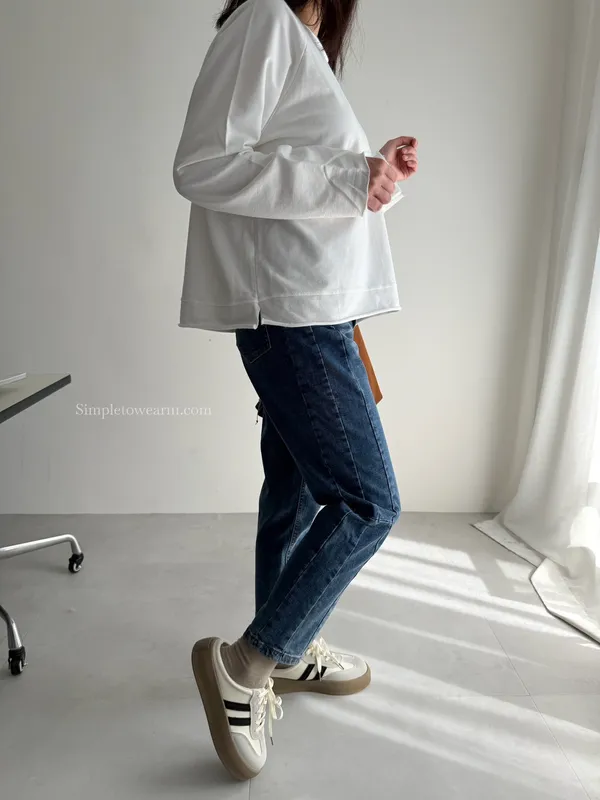 剛剛好的九分長度 配上簡單的小白鞋 就很好看!!