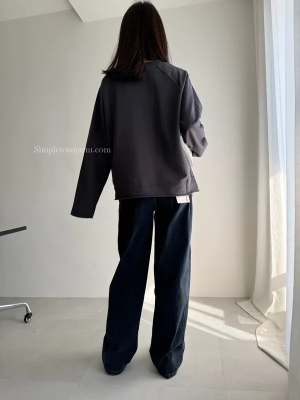 韓 側斜三角剪接落地寬褲 (淺藍/灰藍) S~XL