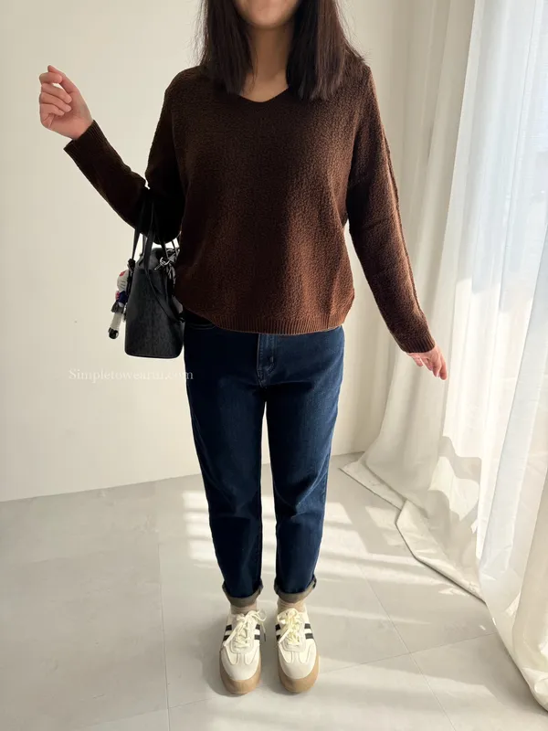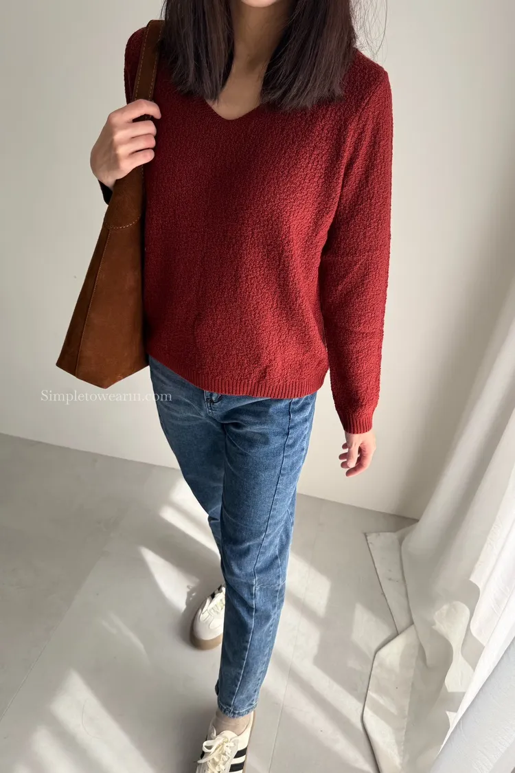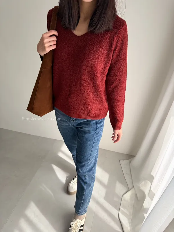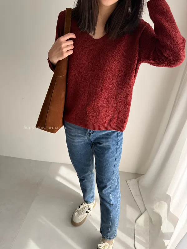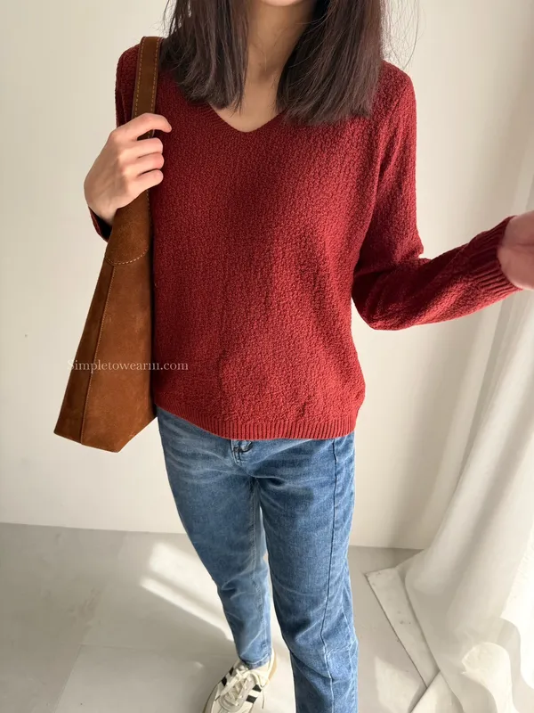 TH家V領不起球針織衫 (白/咖/黑/紅)