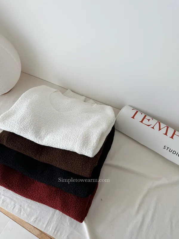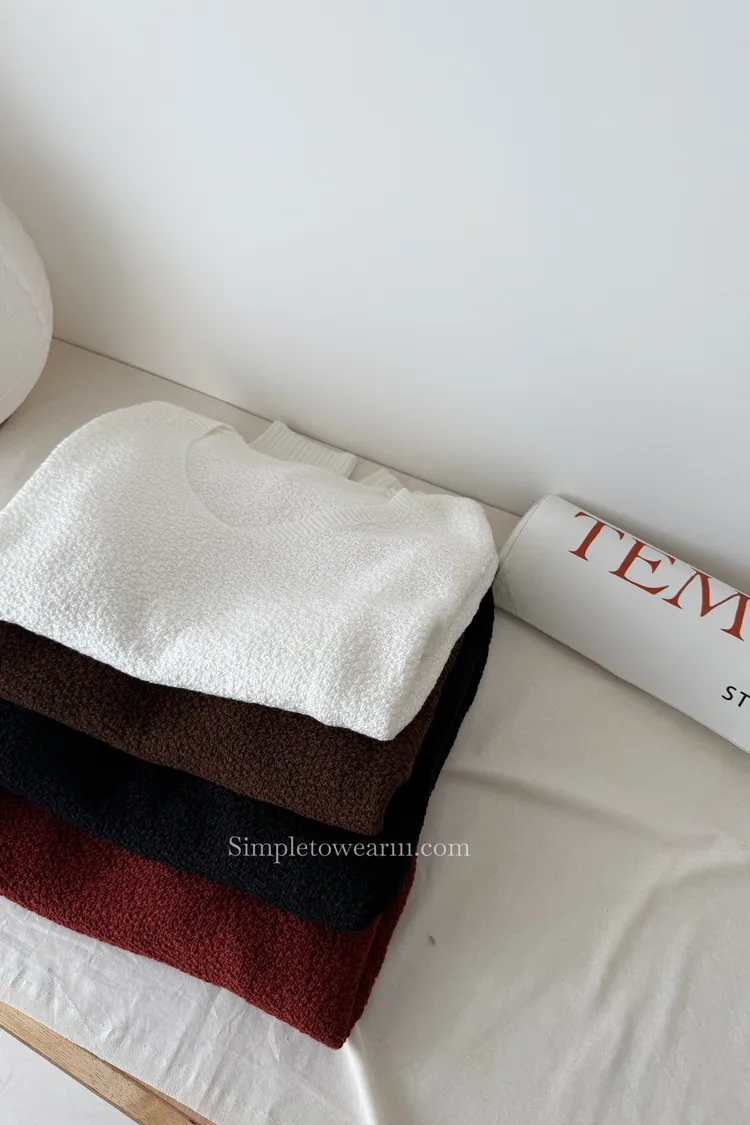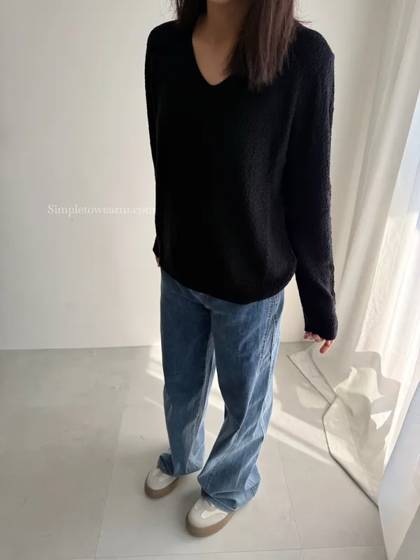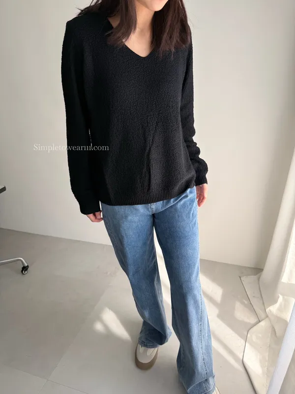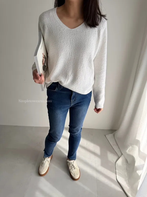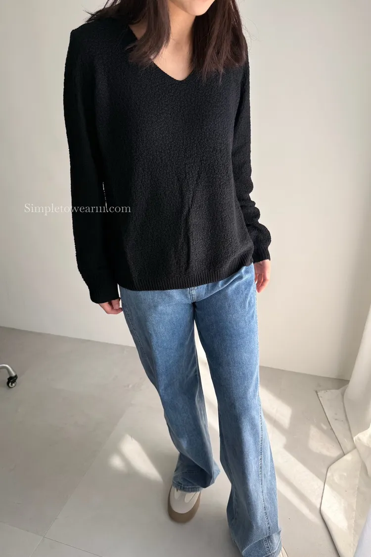 TH家V領不起球針織衫 (白/咖/黑/紅)