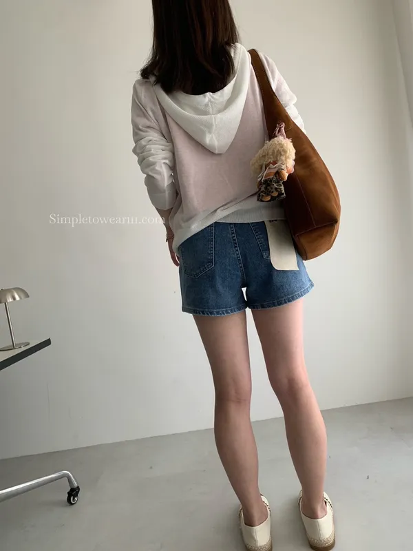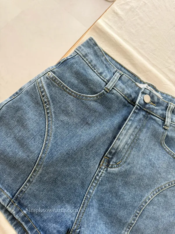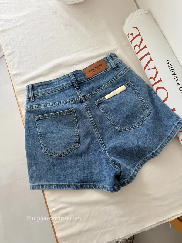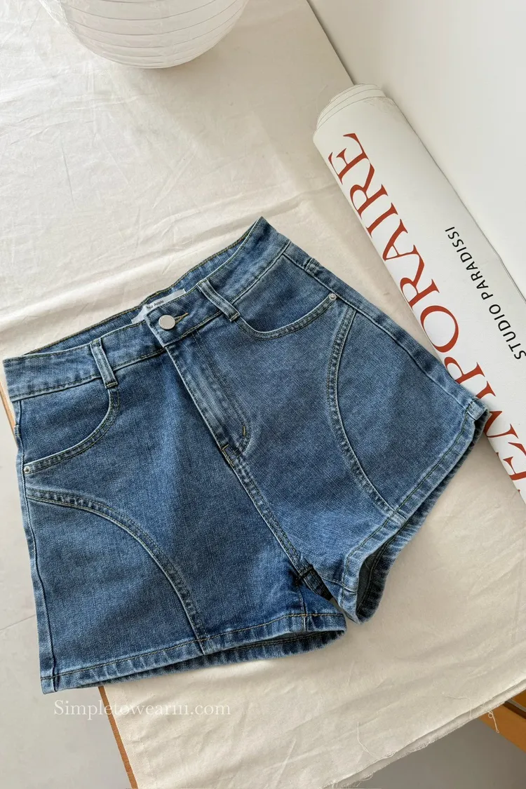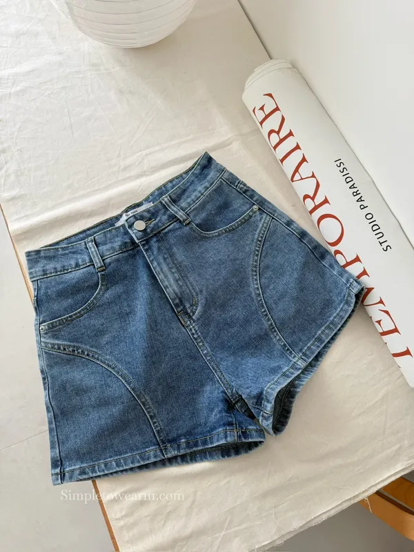 韓 基本款車線短褲 牛仔藍 S~XL